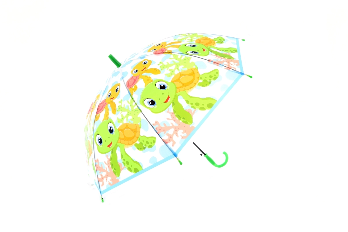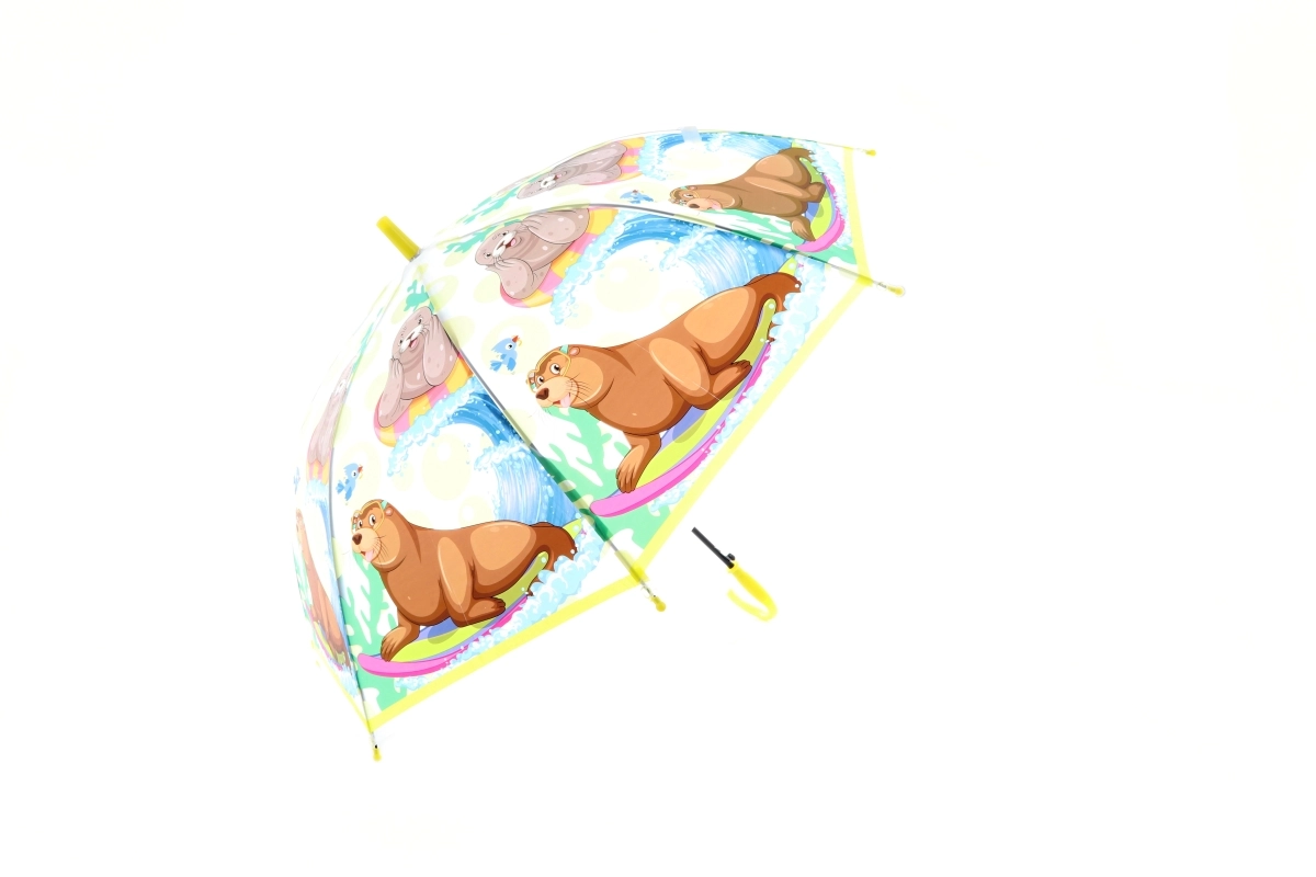Uljepšajte kišne dane dječjim kišobranom s motivima veselih životinjica. Kupolasti oblik za bolju pokrivenost, prozirni paneli za vidljivost i lagana konstrukcija za udobno nošenje. Promjer 75 cm, duljina 60 cm. Više motiva – isporučujemo prema dostupnosti.