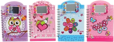 Ova stilska djevojačka bilježnica odličan je pratitelj za bilješke, dnevničke zapise i male ideje. Ukrasni motivi srca, sovi, cvijeća ili leptira te praktično zrcalce na koricama čine je originalnim dodatkom za svaki dan.