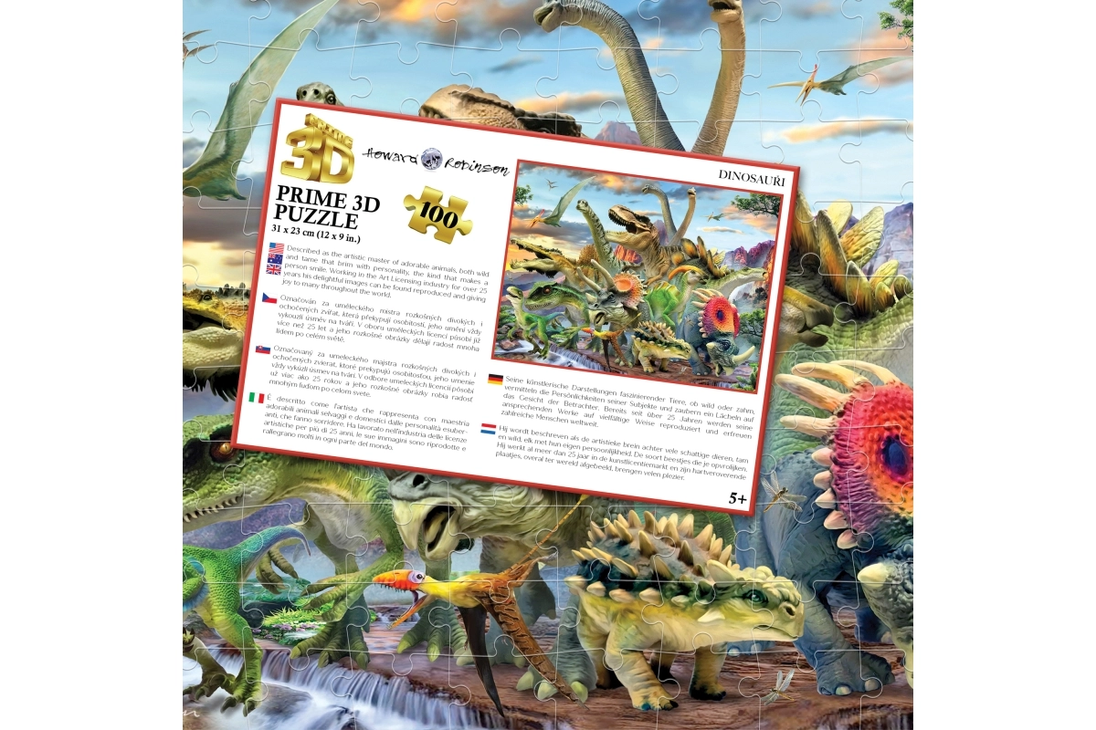 Otkrijte zabavu i učenje s ovim šarenim 3D puzzleom s motivom dinosaura. Idealan za djecu od 5 godina, koja će vježbati finu motoriku, logiku i strpljenje. Pakiranje sadrži 100 dijelova, dimenzije složene slike su 31 × 23 cm, a praktična kutijica ima veličinu 23 × 15 × 5 cm.