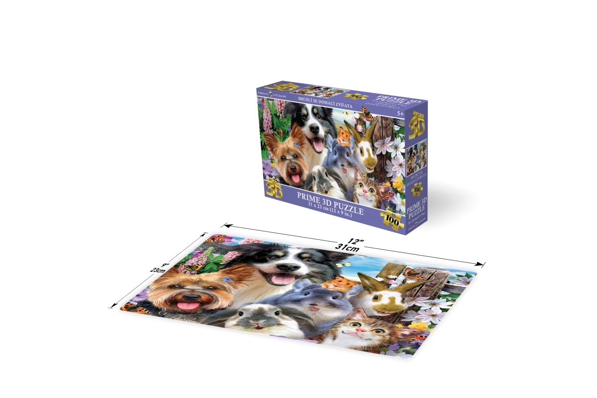 Otkrijte zabavne 3D puzzle s veselim motivom nasmiješenih domaćih životinja. Set sadrži 100 dijelova koji nakon slaganja tvore sliku dimenzija 31 × 23 cm. Idealno za djecu od 5 godina – razvija finu motoriku, strpljenje i logičko razmišljanje.