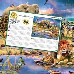 Otkrijte zabavu i učenje s ovim 3D puzzlama s motivom afričkih životinja. Pakiranje sadrži 100 dijelova koji nakon slaganja stvaraju dojmljivu sliku veličine 31 × 23 cm. Idealno za djecu od 5 godina i izvrsno za razvoj fine motorike, strpljenja i prostorne mašte.
