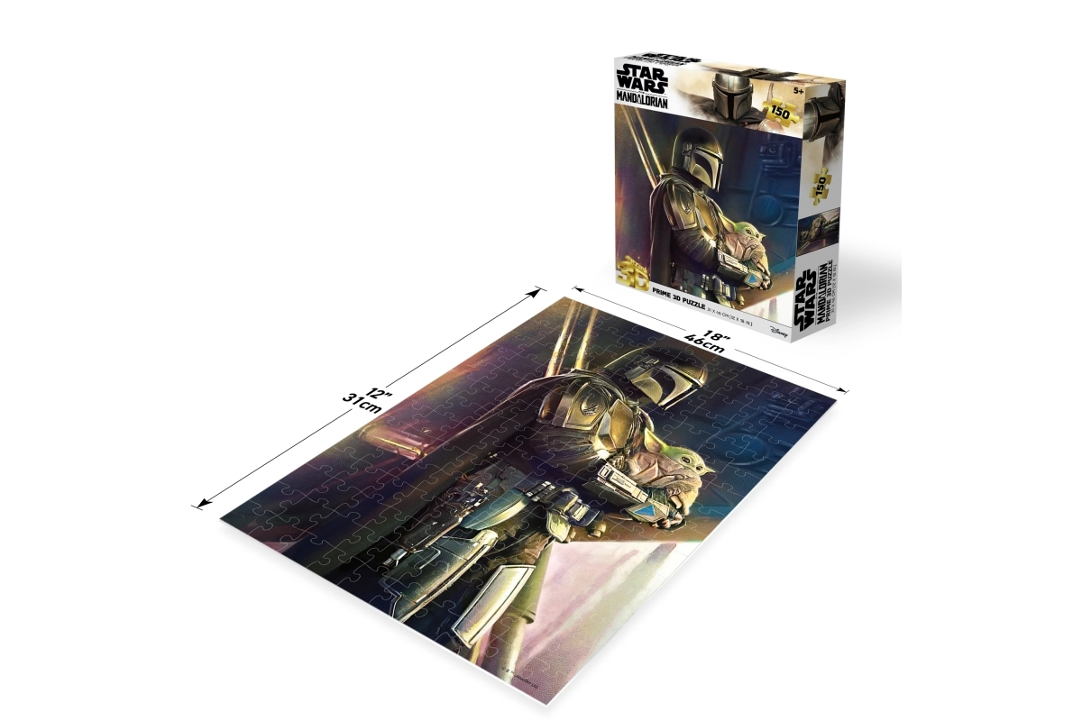 Uđite u svijet Star Warsa s 3D puzzlama s ikoničnim Mandalorianom i malenim Groguom. Zahvaljujući posebnom 3D efektu motiv oživljava pred vašim očima te nakon slaganja stvara dekorativnu sliku dimenzija 46 × 31 cm. Set sadrži 300 precizno izrezanih dijelova i odličan je izbor za zajedničko obiteljsko sastavljanje ili opuštanje nakon napornog dana.