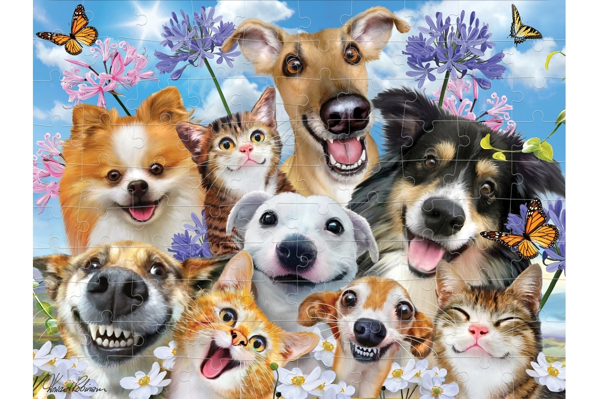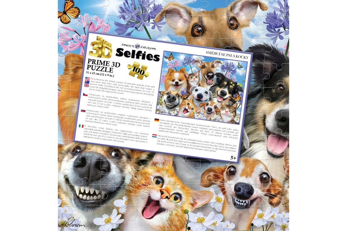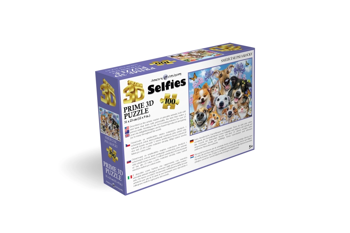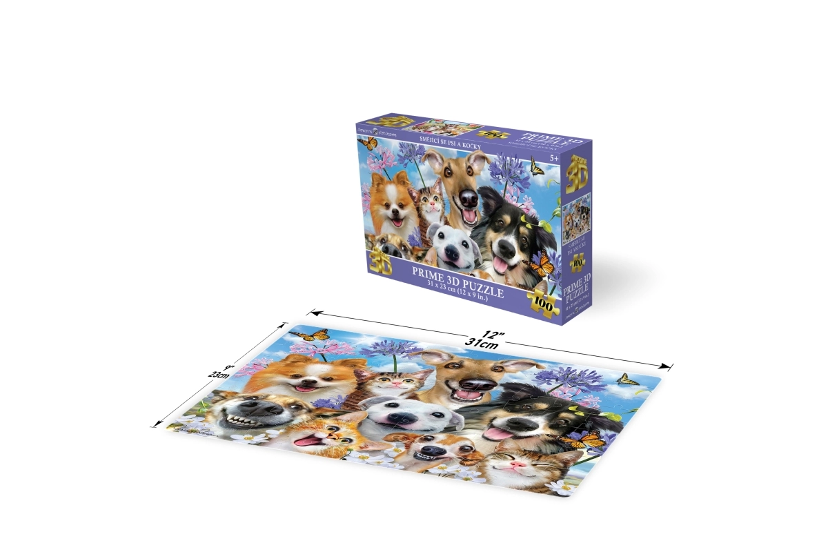 Uživajte u zabavi za cijelu obitelj uz 3D puzzle s motivom nasmiješenih pasa i mačaka. Slagalica od 100 dijelova nudi prekrasan 3D efekt, dimenzije složene slike 31 × 23 cm i idealna je za djecu od 5 godina.