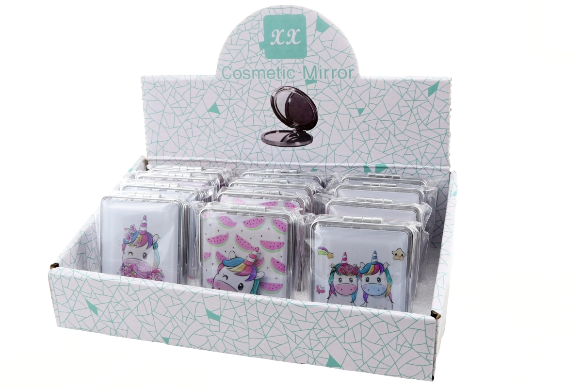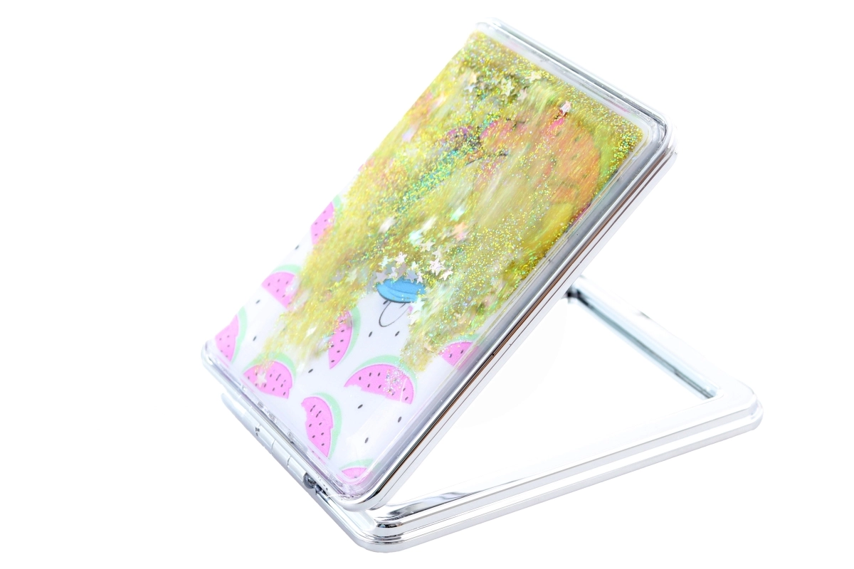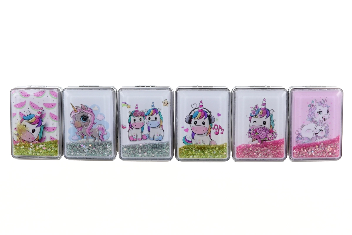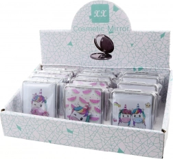 Stilsko džepno zrcalo s motivom veselih jednoroga i prednjom stranom s šljokicama koje se presipaju. Kompaktne dimenzije i zrcalo s obje strane čine ga praktičnim dodatkom za torbicu. Dostupno u više dizajna – šaljemo prema dostupnosti na zalihi.