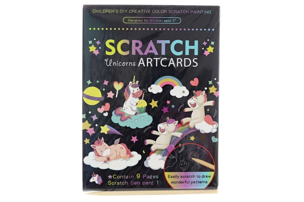 Ovaj kreativni set donosi zabavno struganje s popularnim motivom jednoroga. Uz priloženi drveni alat nježno ćete otkrivati obojene slojeve i stvoriti efektne slike, idealne za izlaganje ili darivanje.