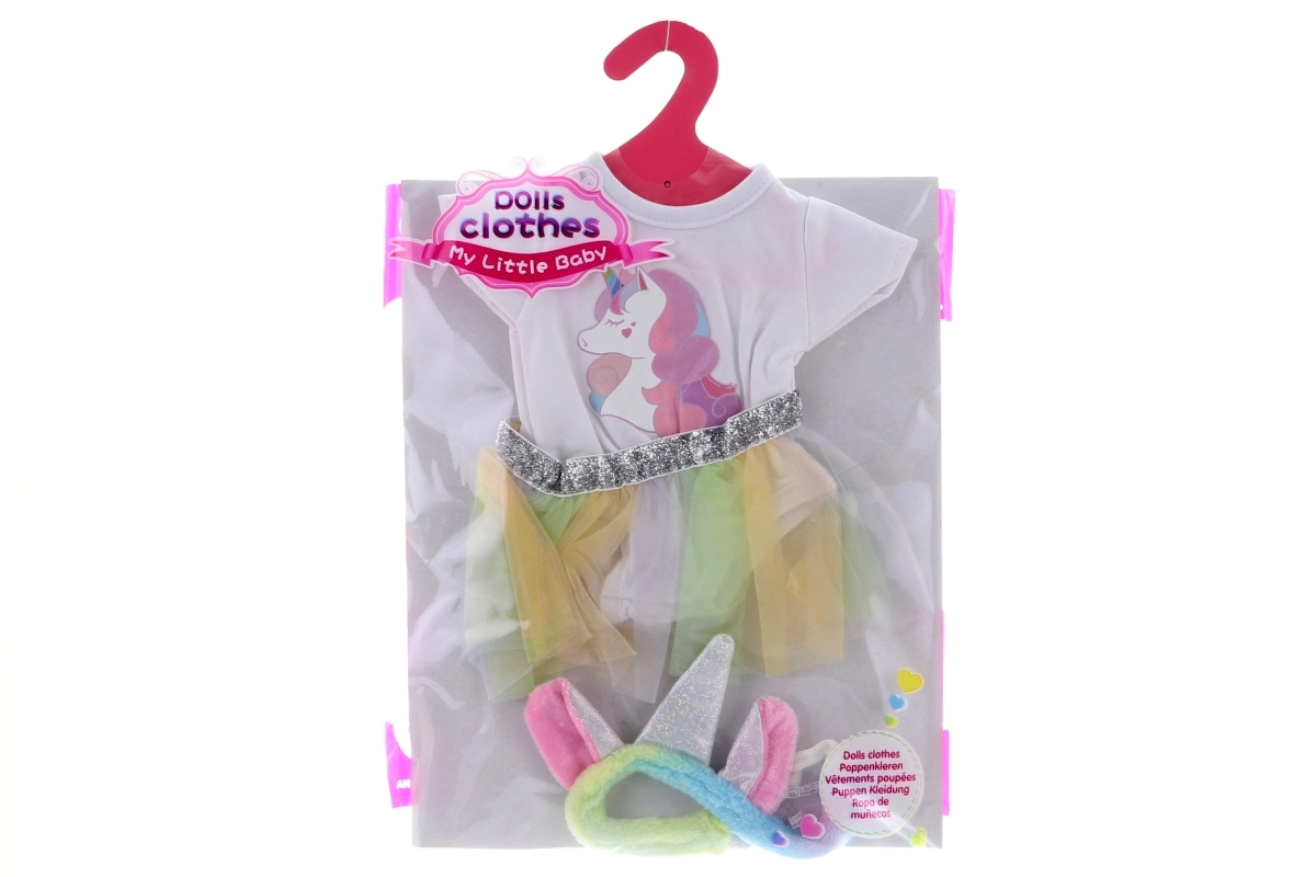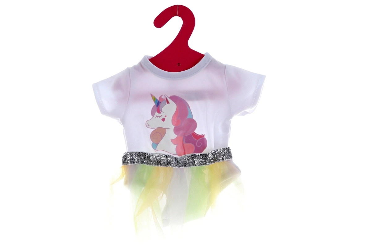 Ovaj čaroban set odjeće za lutke donosi sve što maloj modnoj ljubiteljici treba za bajkoviti styling. Body s printom jednoroga, prozračna tutu suknjica sa sjajnim pojasom i mekana traka s rogom stvaraju savršen outfit za svaku priliku.