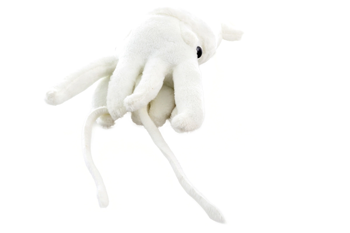 Ova bijela plišana lignja razveselit će male i velike ljubitelje morskih stvorenja. Realističan oblik s više krakova i izraženim okom potiče maštu i podržava kreativnu, maštovitu igru. Zahvaljujući ugodnom, mekom materijalu savršena je kao mazilica za krevetić i lijepa dekoracija dječje sobe.