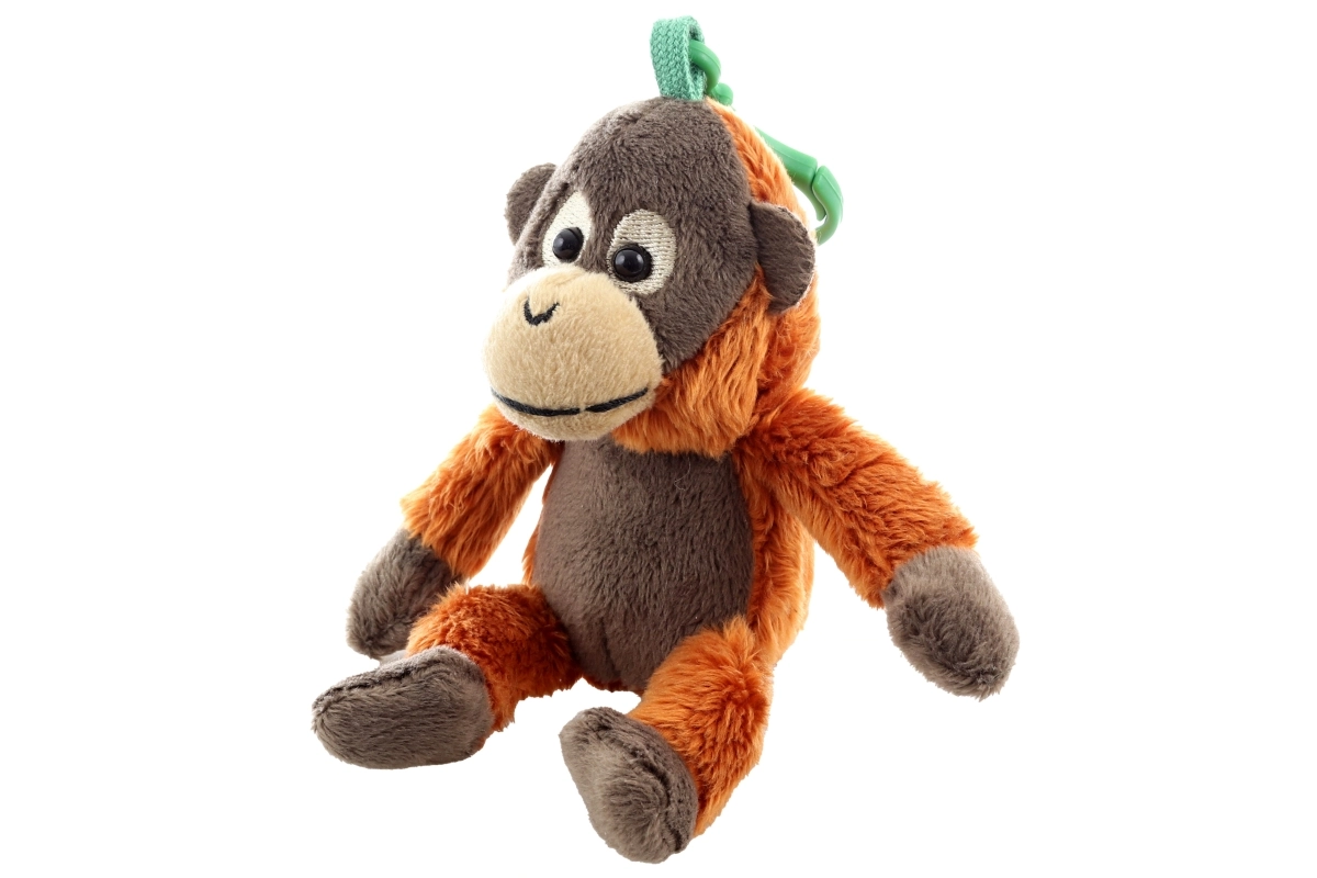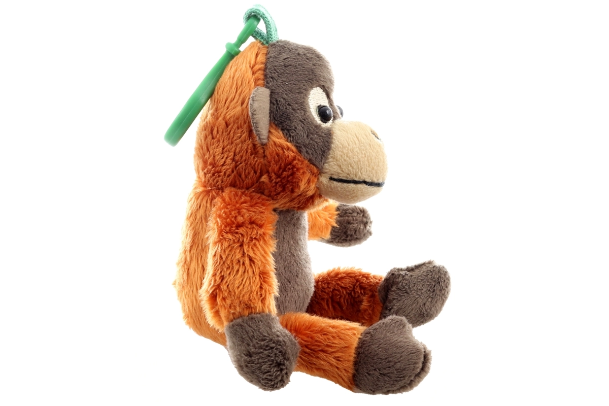 Zelena kopča omogućuje brzo pričvrstiti orangutana na ruksak, kolica ili ključeve – uvijek pri ruci i spreman za igru.