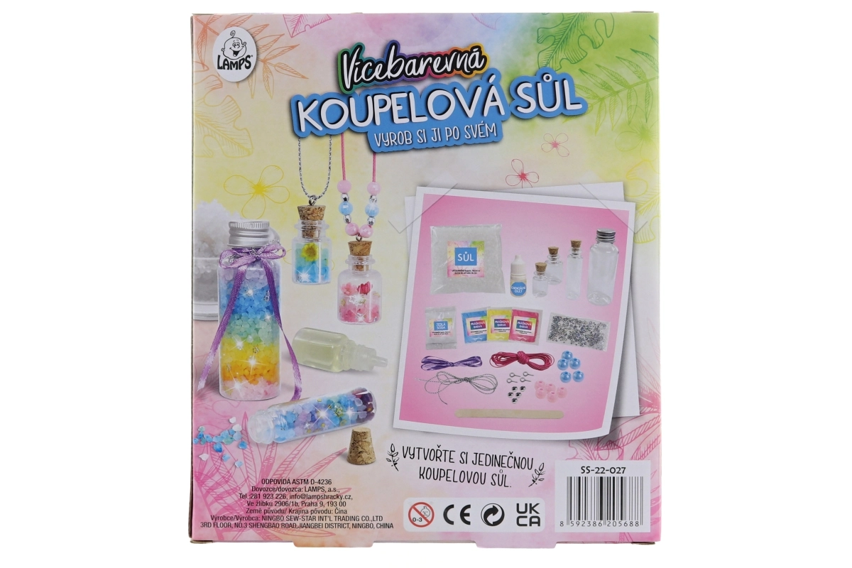 Uz ovaj zabavni set lako ćete izraditi jedinstvenu sol za kupanje prema vlastitoj mašti. Kombinirajte boje, mirise i ukrase te izradite originalne poklone ili opuštajuće mješavine za kupanje. Jednostavne upute i sve potrepštine u pakiranju jamče da se u stvaranje može upustiti svatko.