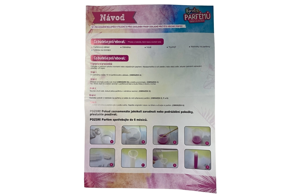 Ovaj zabavni i edukativni set omogućuje djeci jednostavno miješanje različitih mirisa i izradu vlastitog parfema prema mašti. Zahvaljujući priloženim uputama i pomagalima, izrada je jednostavna, sigurna i potiče kreativnost i finu motoriku.