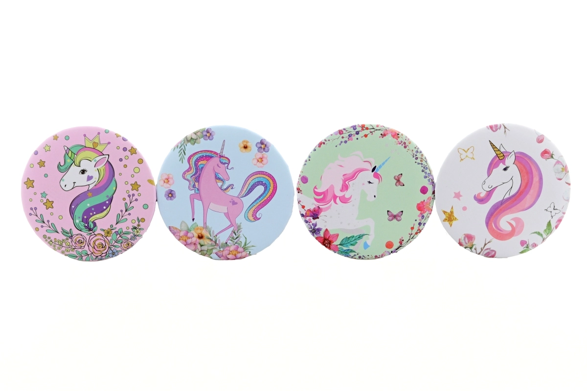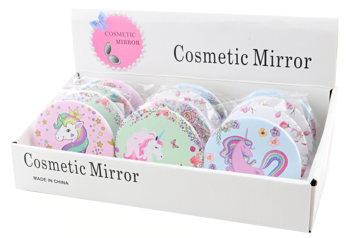 Stilsko okruglo zrcalce s bajkovitim motivom jednoroga razveselit će pri svakodnevnoj upotrebi i kao lijep poklon. Kompaktan promjer cca 7 cm stane u svaku torbicu. Lagana plastična izrada, praktično pakiranje i različiti dizajni ovisno o dostupnosti na skladištu. Proizvod nije igračka.