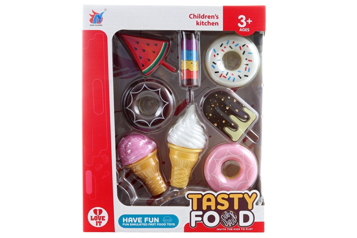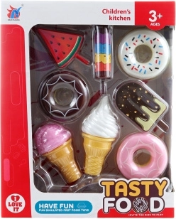 Ovaj set slatkiša idealan je za dječje kuhinje, igraonice i igru trgovine. Zahvaljujući laganoj i čvrstoj plastici djeca mogu sigurno razvijati maštu, finu motoriku i socijalne vještine kroz zajedničku igru.