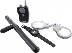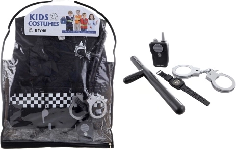 Postanite heroj ulice s ovim policijskim kostimom za djecu. Set sadrži prsluk, sat, voki-toki, lisice i pendrek – sve za realističnu policijsku igru. Izrađeno od izdržljivog plastičnog i poliesterskog materijala. Idealno za djecu od 3 godine.