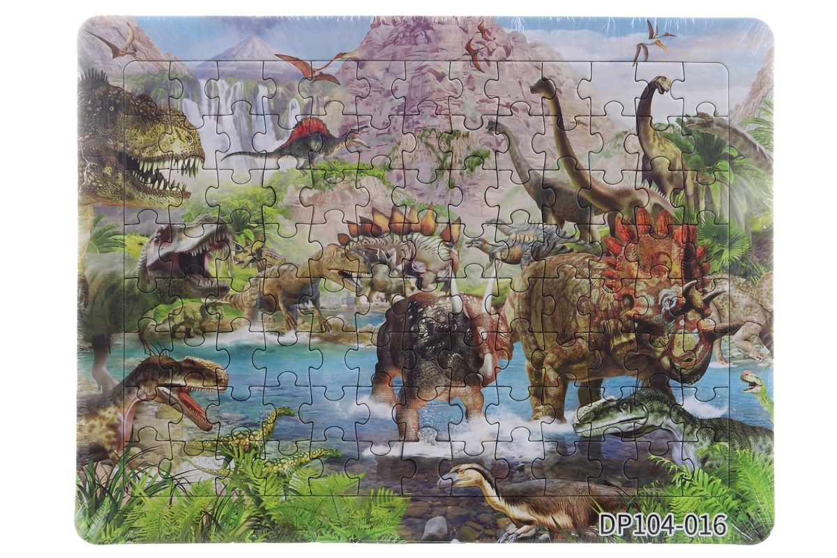 Ova šarena slagalica s dinosaurusima razveselit će svakog malog ljubitelja prapovijesti. Zahvaljujući 104 dijela djeca vježbaju strpljenje, koncentraciju i vizualnu percepciju, a pritom će uživati u otkrivanju detalja na dovršenoj slici.