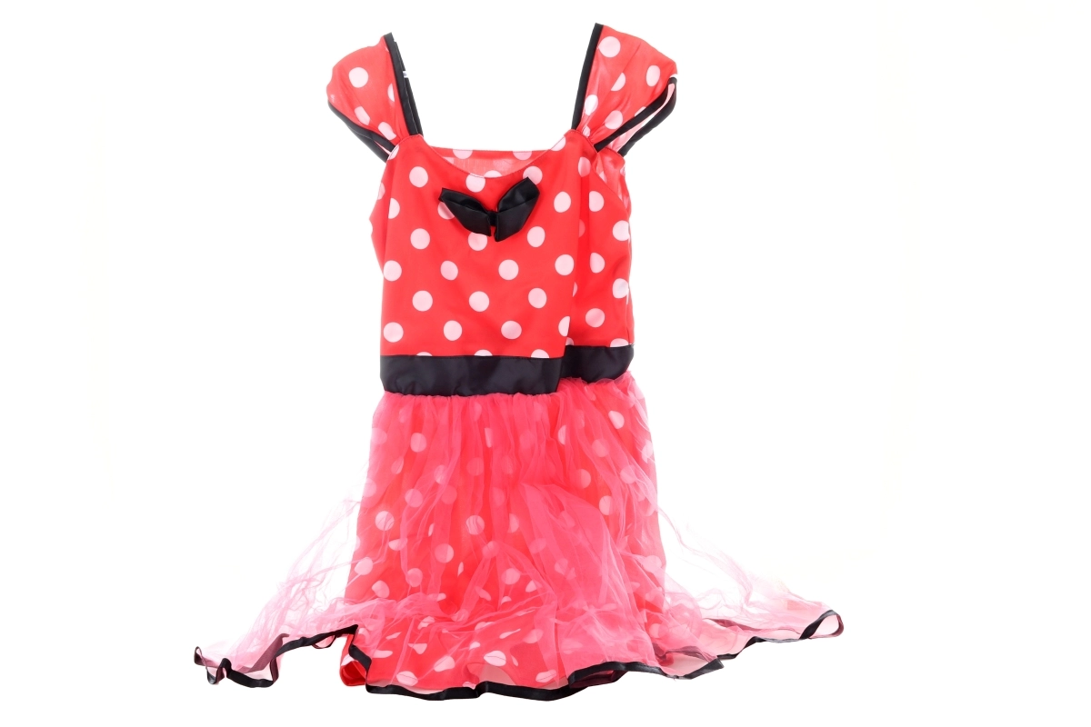 Preslatka dječja haljina u stilu Minnie od laganog materijala sa naboranom til suknjom, točkastim uzorkom i mašnicom idealna je za karneval, proslave i kostimiranu igru kod kuće. Zahvaljujući elastičnom struku udobno se prilagođava figuri i djeci uzrasta 3+ pruža udobnost i radost u igri uloga.
