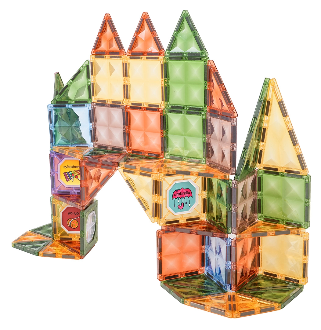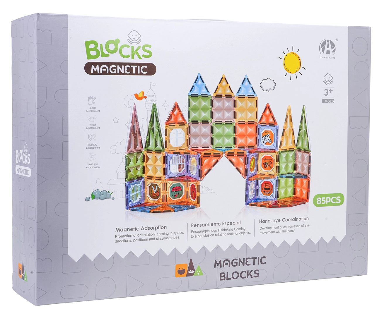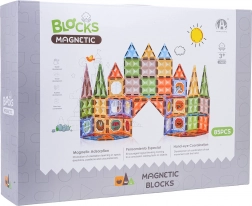 Ovaj bogato opremljen magnetski set sadrži prozirne šarene kvadrate i trokute koji se sigurno povezuju po rubovima. Djeca mogu stvarati dvorce, lukove i geometrijske građevine te istodobno vježbati finu motoriku i koncentraciju. Dijelovi su od kvalitetne, izdržljive plastike, a magneti osiguravaju čvrsto spajanje pod raznim kutevima.