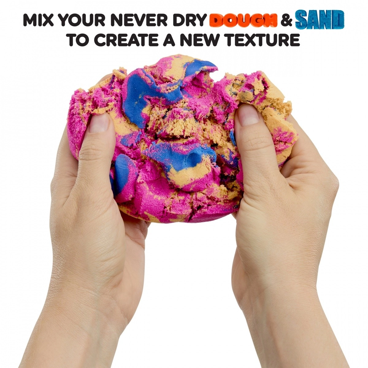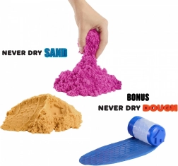 Poseban sastav osigurava da pijesak ostaje stalno podatno mekan i oblikovan – stišćite, režite i modelirajte bez vremenskog ograničenja.
