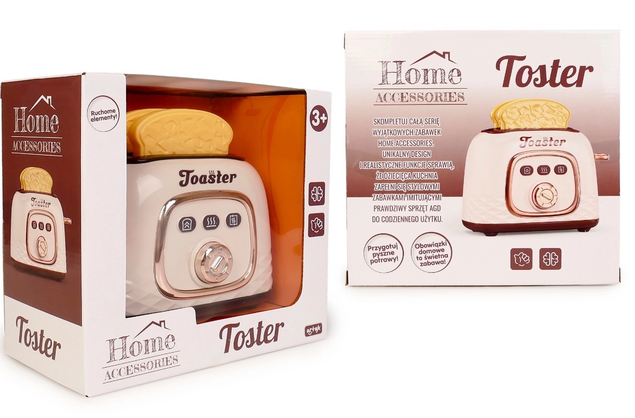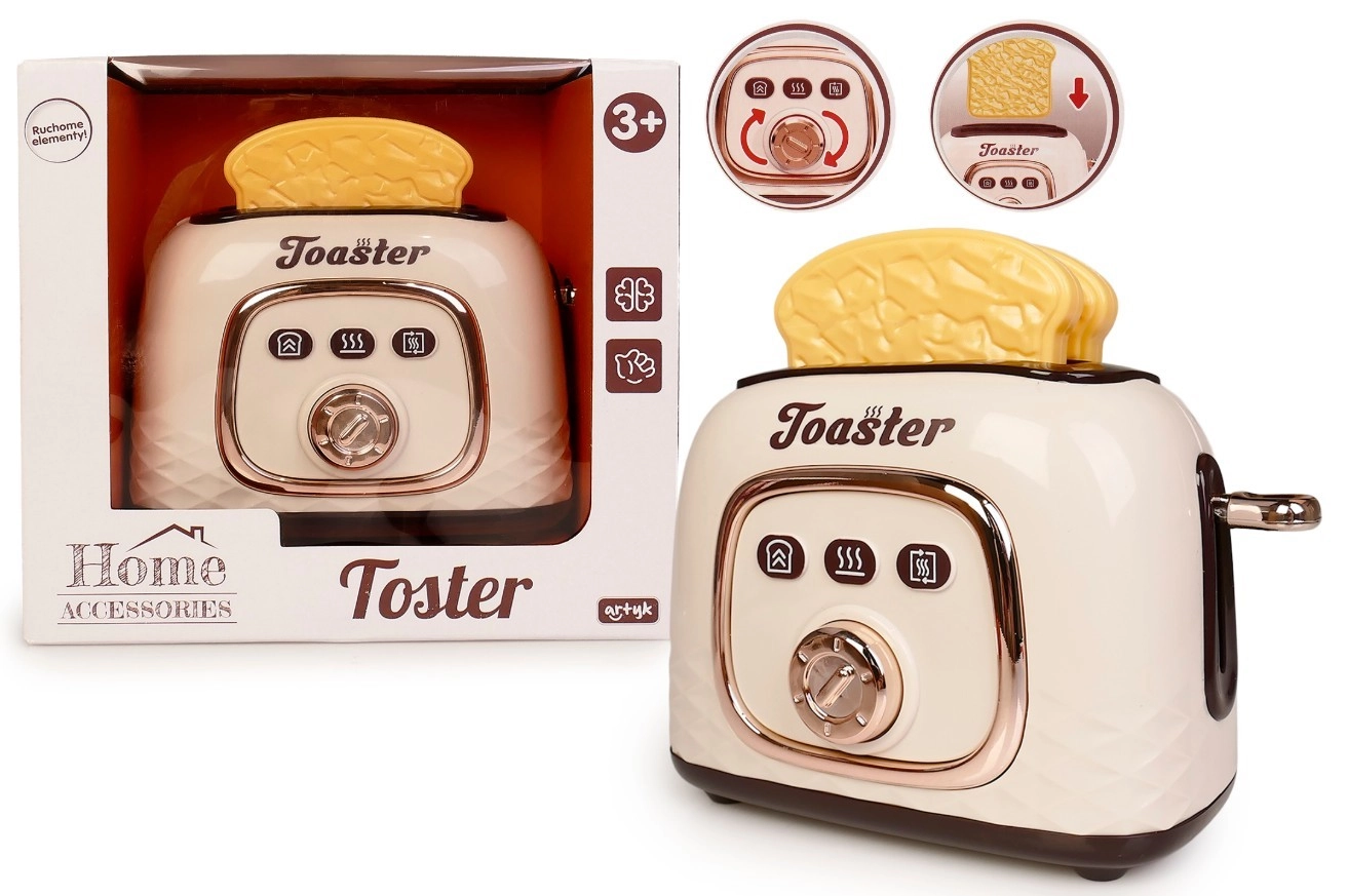 Zabavni dječji toster s tostovima donosi realističnu igru u kuhinjici. Nakon pritiska bočne tipke, tosti se spuštaju dolje i nakon nekoliko sekundi sami iskoče. Izvrsna motorička zabava, realistični efekti i okretni kotačić s klikanjem za još veću autentičnost.