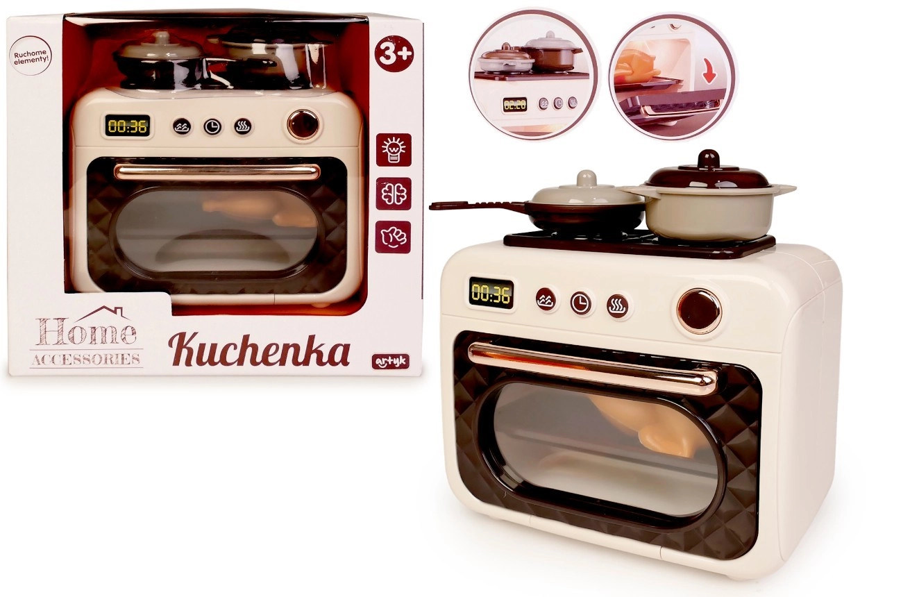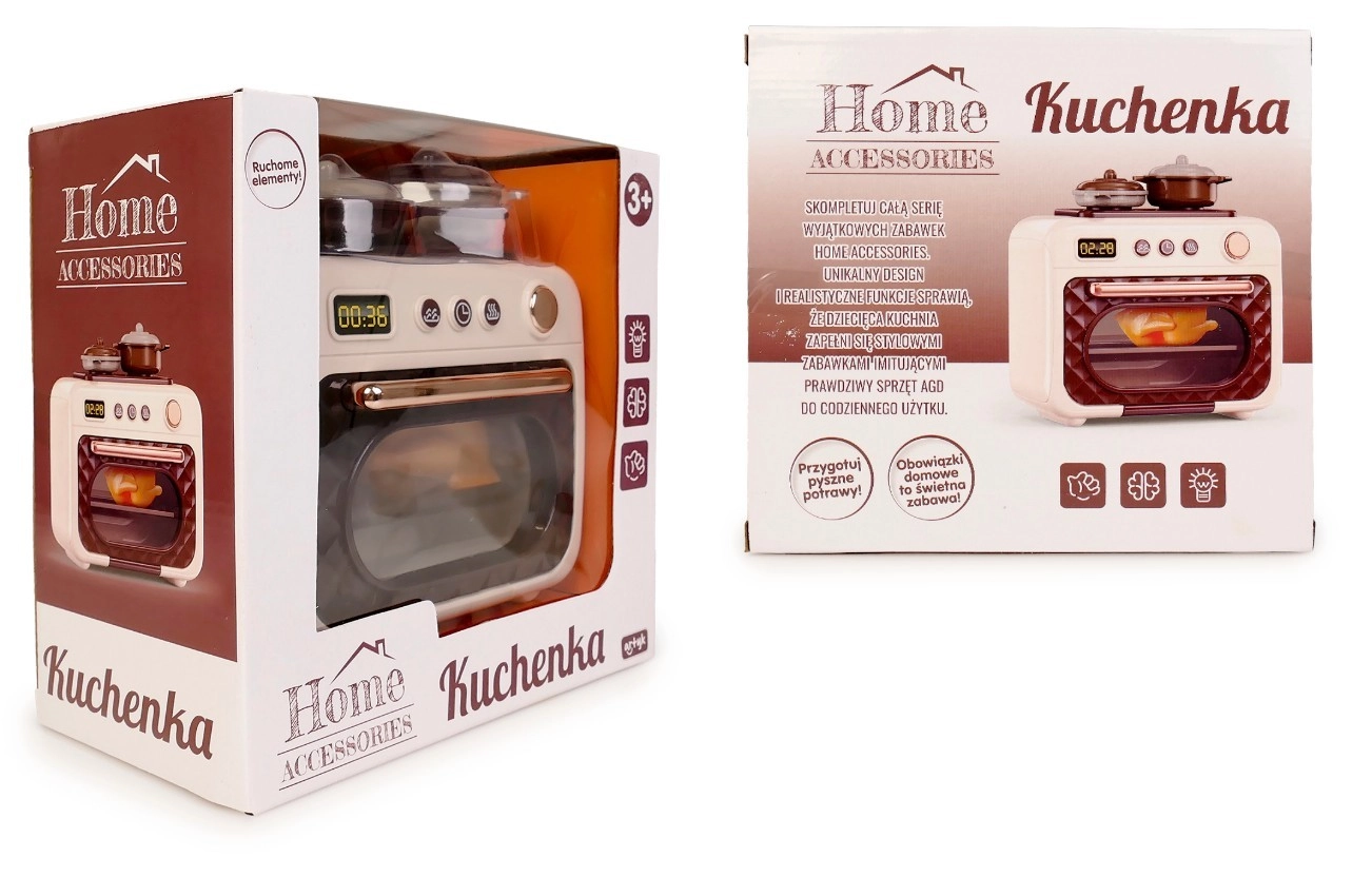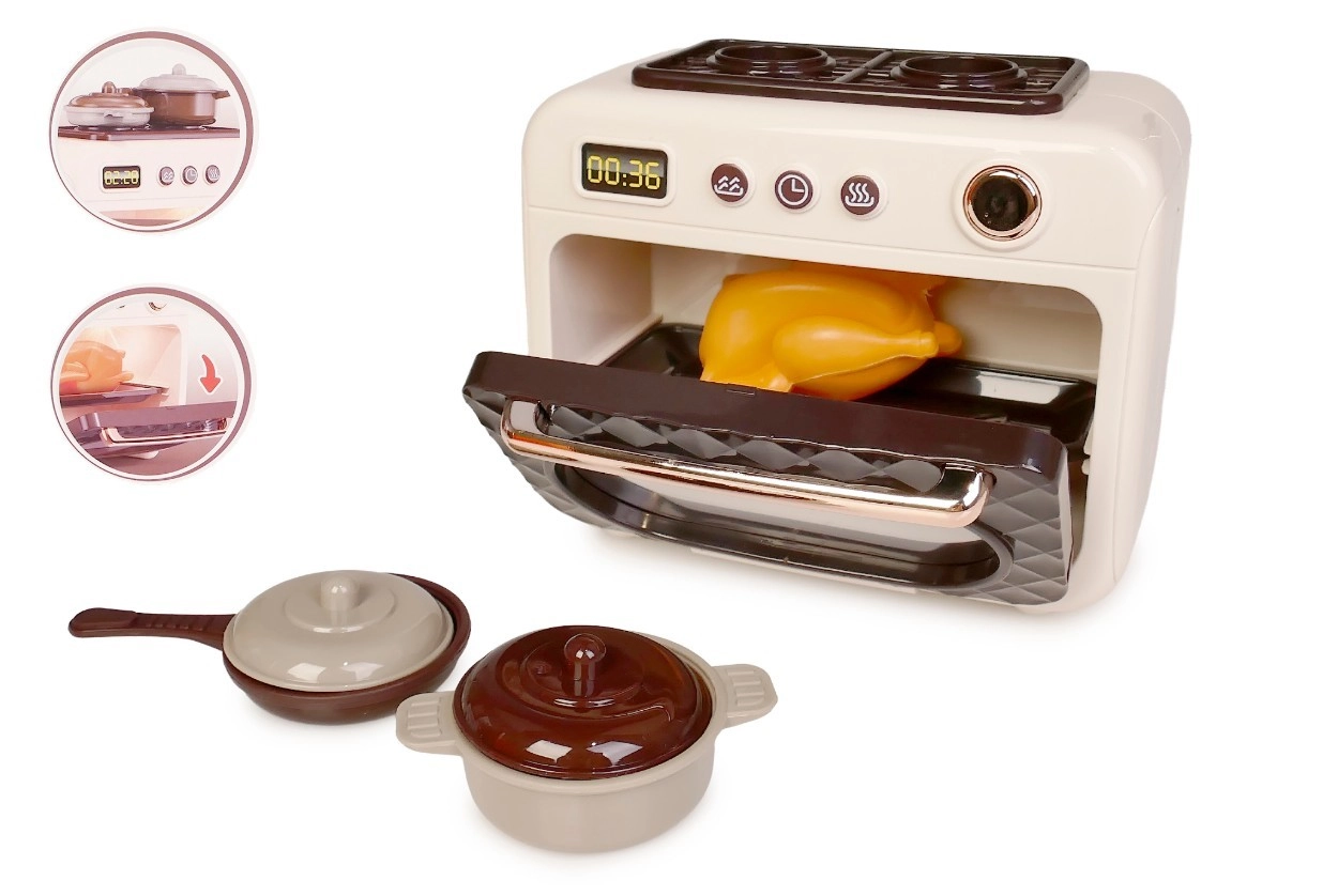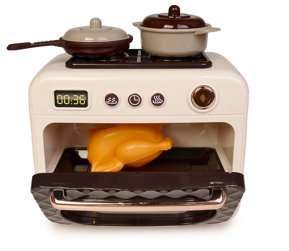 Otkrijte realističnu dječju pećnicu koja će razveseliti svakog malog kuhara. Nakon pritiska na gumb pećnica zasvijetli i začuje se vesela melodija, zahvaljujući čemu je igra još privlačnija i zabavnija.