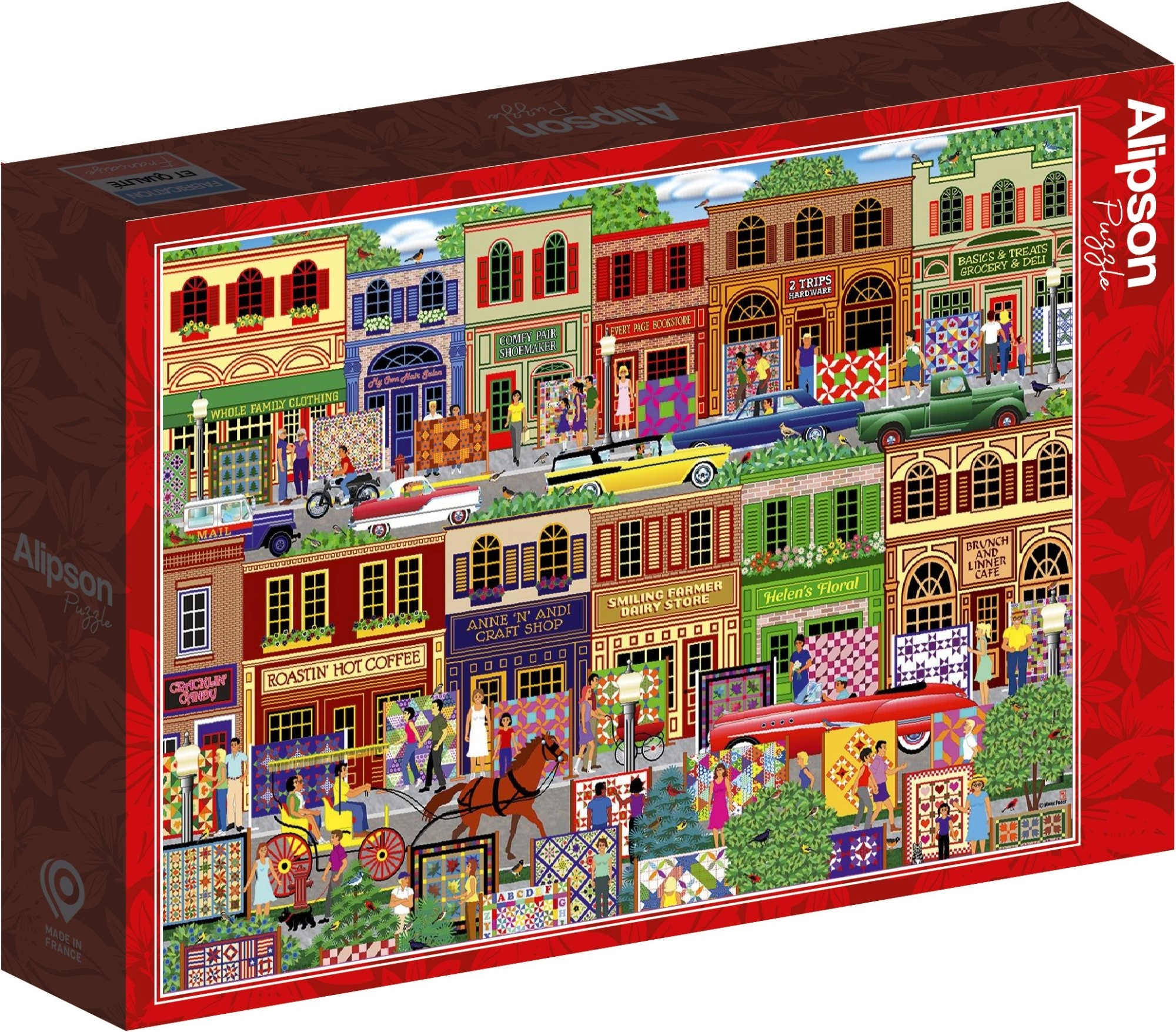 Otkrijte šareni svijet patchworka s ovim kvalitetnim puzzleom od 1000 dijelova brenda Alipson. Zahvaljujući precizno izrezanim dijelovima i dimenziji nakon slaganja cca 69 × 47,8 cm, uživat ćete u dugoj i opuštajućoj zabavi, živim bojama i detaljnom motivu pogodnom za odrasle i stariju djecu.