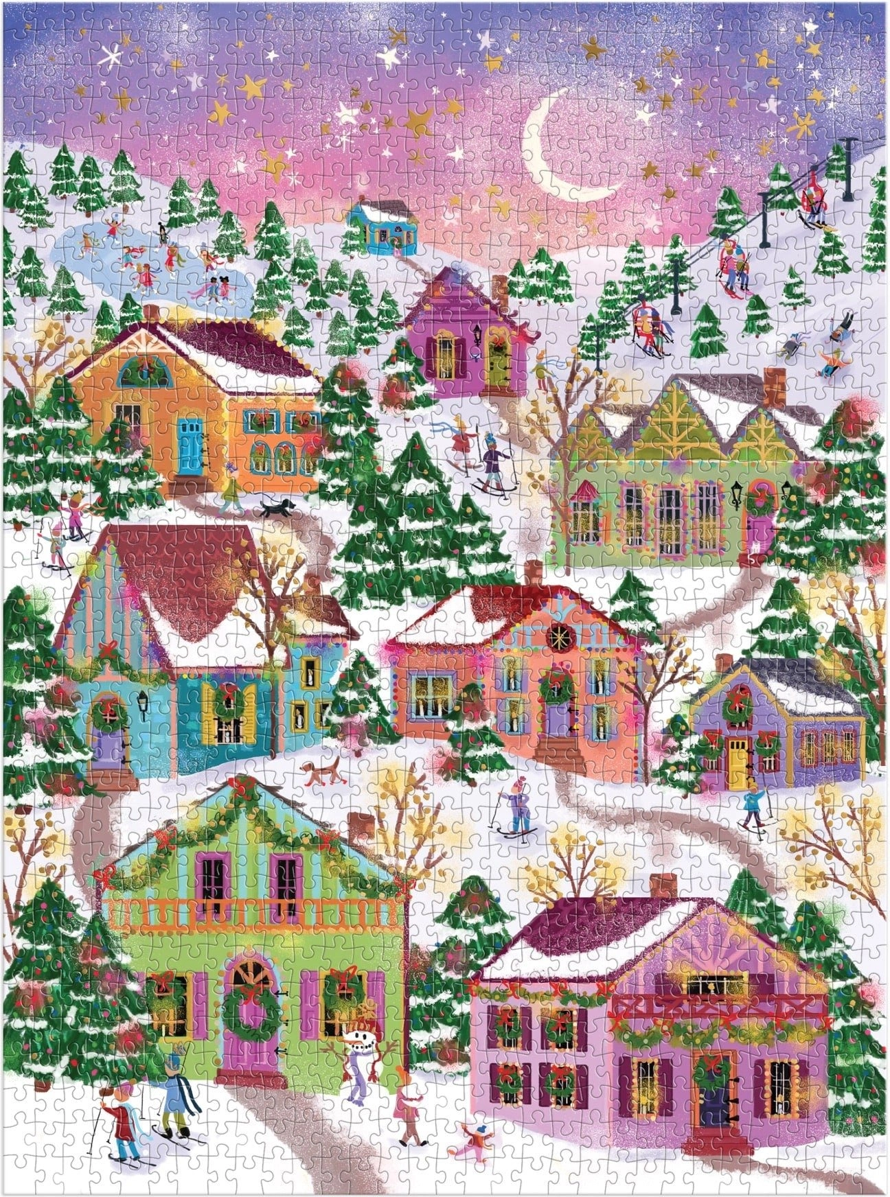 Ova stilska slagalica s motivom snježnog sela idealna je za zimske večeri i kao poklon za ljubitelje slagalica. Metalik efekt stvara dojam zlata, srebra i drugih sjajnih metala, zahvaljujući čemu gotova slika zaista dolazi do izražaja.