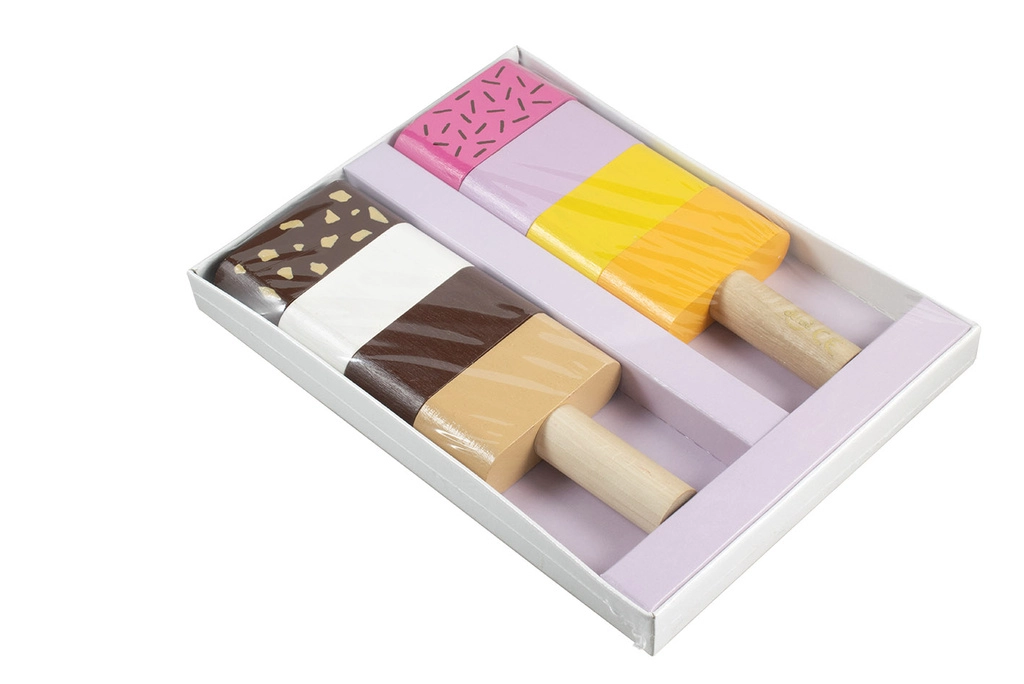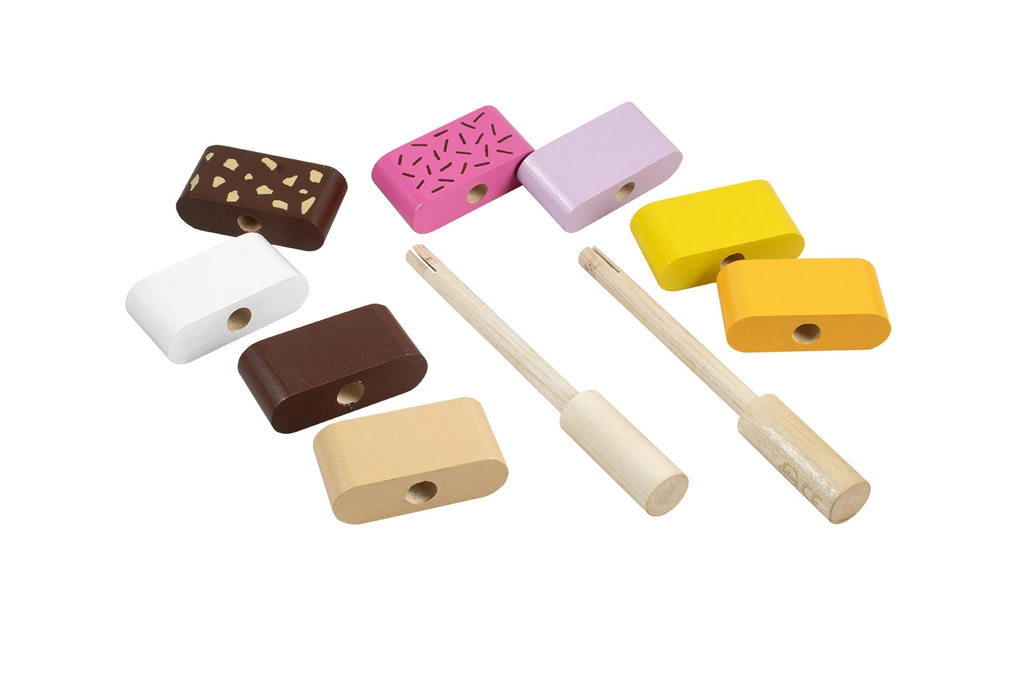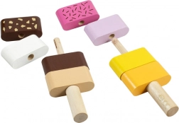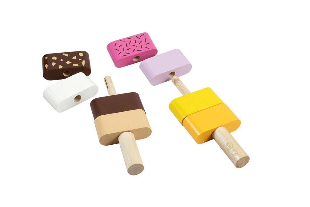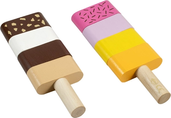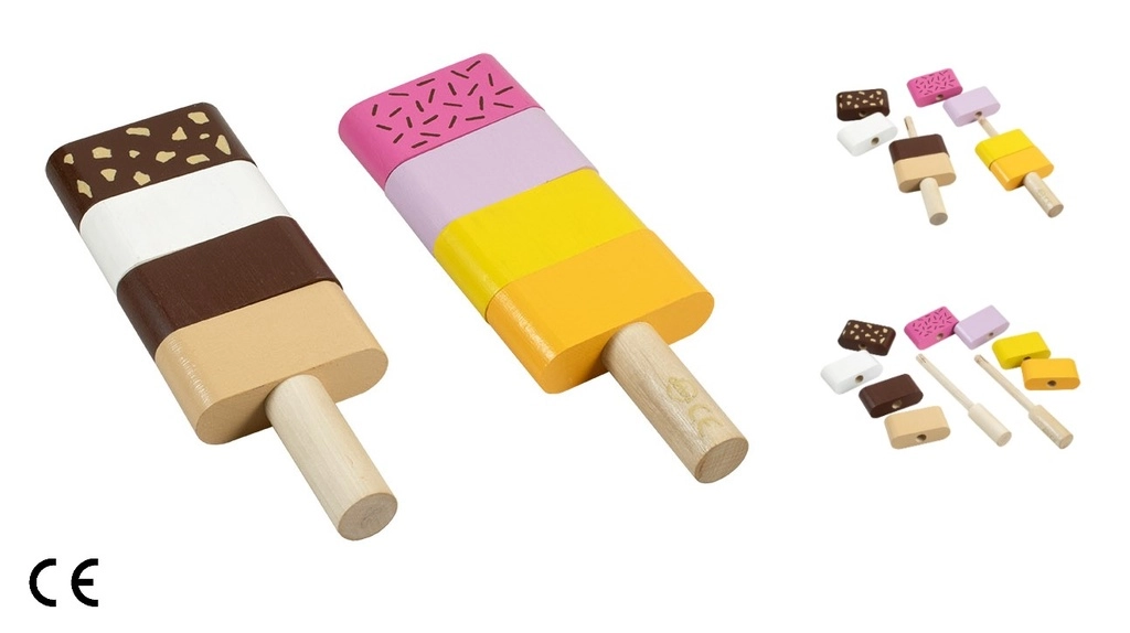 Zabavna drvena motorička igračka za najmlađe: dva slagana sladoleda s izmjenjivim dijelovima potiču finu motoriku, maštu i logičko razmišljanje. Djeca mogu slobodno kombinirati boje i slagati „okuse” prema svojoj mašti. Kvalitetna izrada od drva i sigurne boje odgovaraju europskim sigurnosnim standardima.