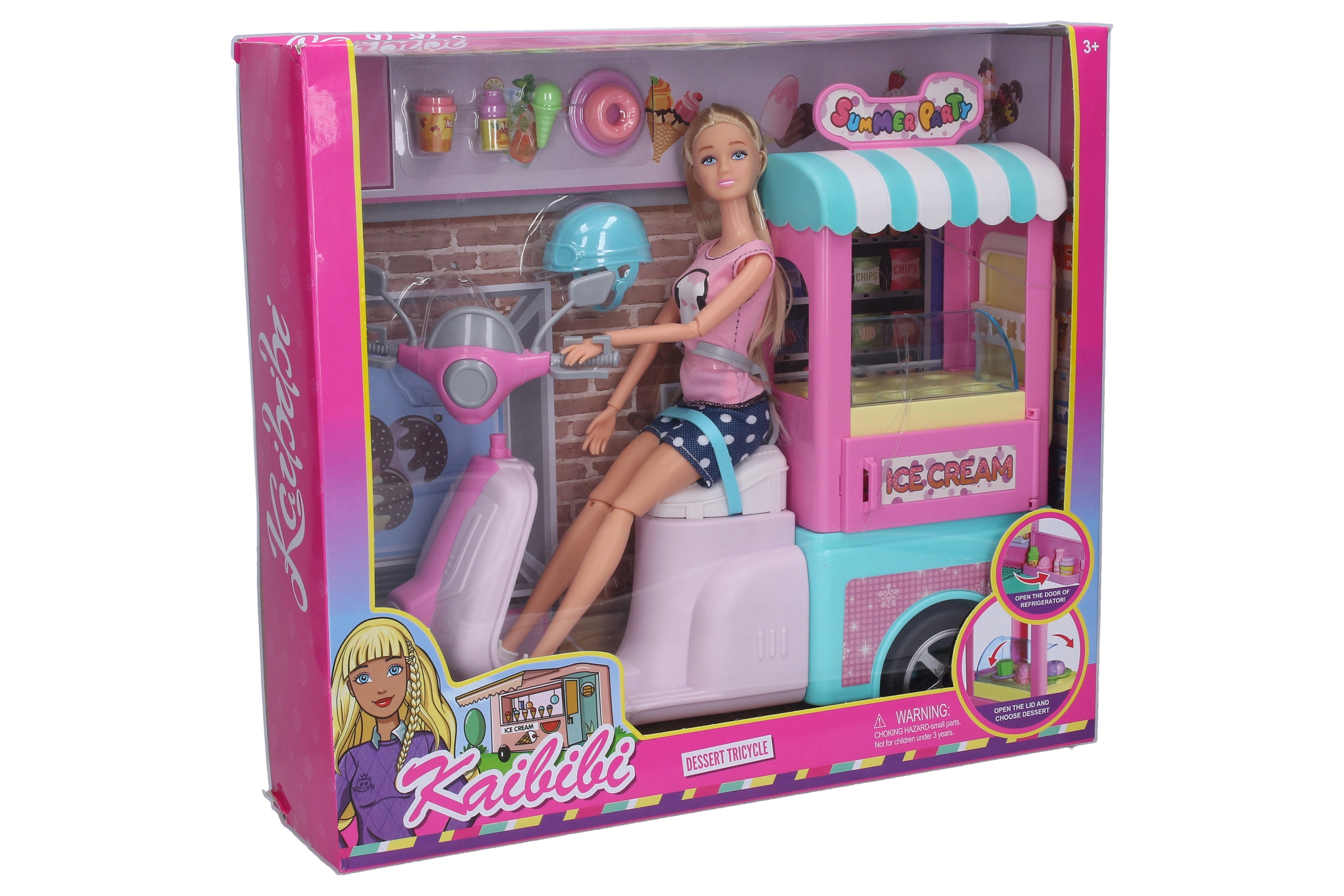 • Kompletan set: lutka, skuter za sladoled, kaciga i tematski dodaci.