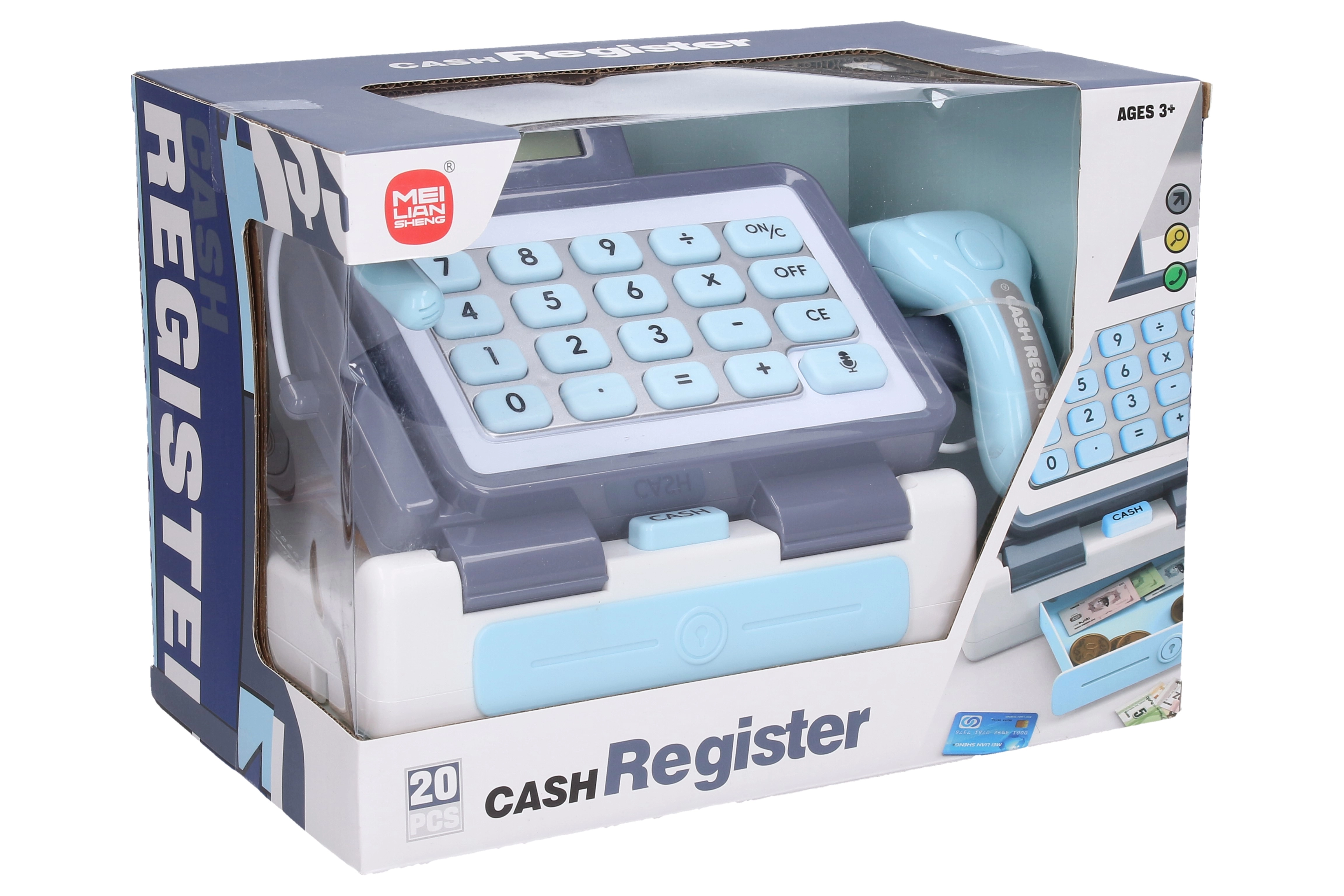 Zabavna dječja blagajna u plavoj boji donosi realističnu igru trgovine. Nudi funkcionalan kalkulator, mikrofon i ladicu za novac na otvaranje. Idealna za razvoj mašte i osnovnog računanja.