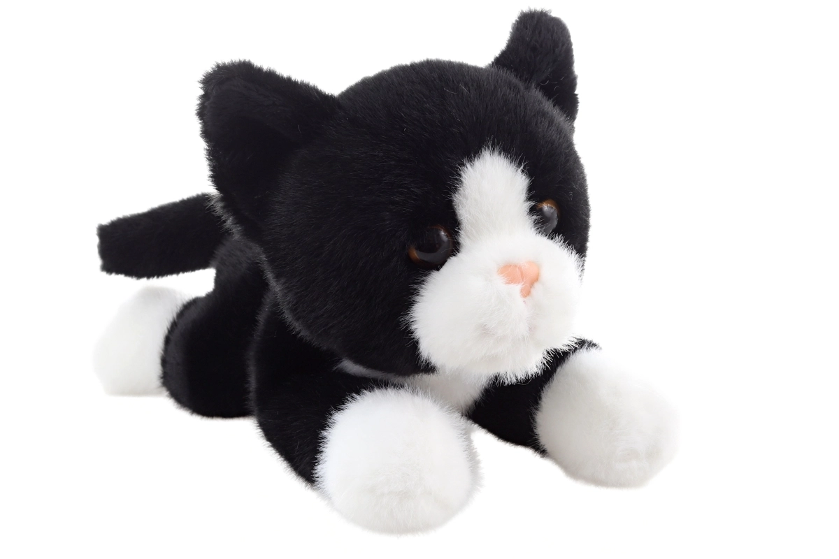 Ova ležeća plišana mačka odmah će osvojiti srce svojim nježnim izrazom i ugodnom površinom. Zahvaljujući kompaktnim dimenzijama 20 × 12 × 11 cm lako stane u kolica, krevetić i ruksak. Mekana ispuna i baršunast pliš jamče ugodno maženje i sigurnost za najmlađe.