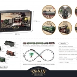 Stilizirani set retro vlakića donosi djeci atmosferu klasičnih željeznica. Akumulator 3,7 V (uključen u pakiranje) osigurava udoban rad bez česte zamjene baterija. Nakon dolijevanja vode priloženom pipetom lokomotiva stvara efekt dima, svijetli prednje svjetlo i tijekom vožnje reproducira zvukove vlaka. Zabavu upotpunjuje mogućnost vožnje naprijed i natrag te i isključivanje zvukova za tihi način rada.
