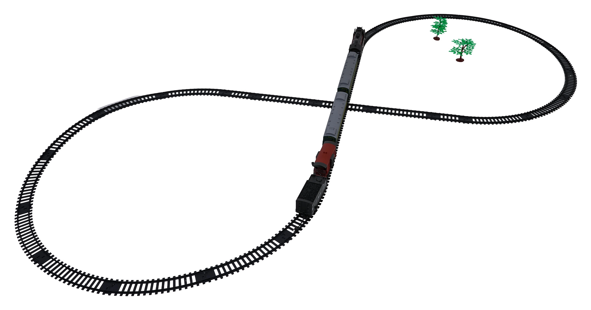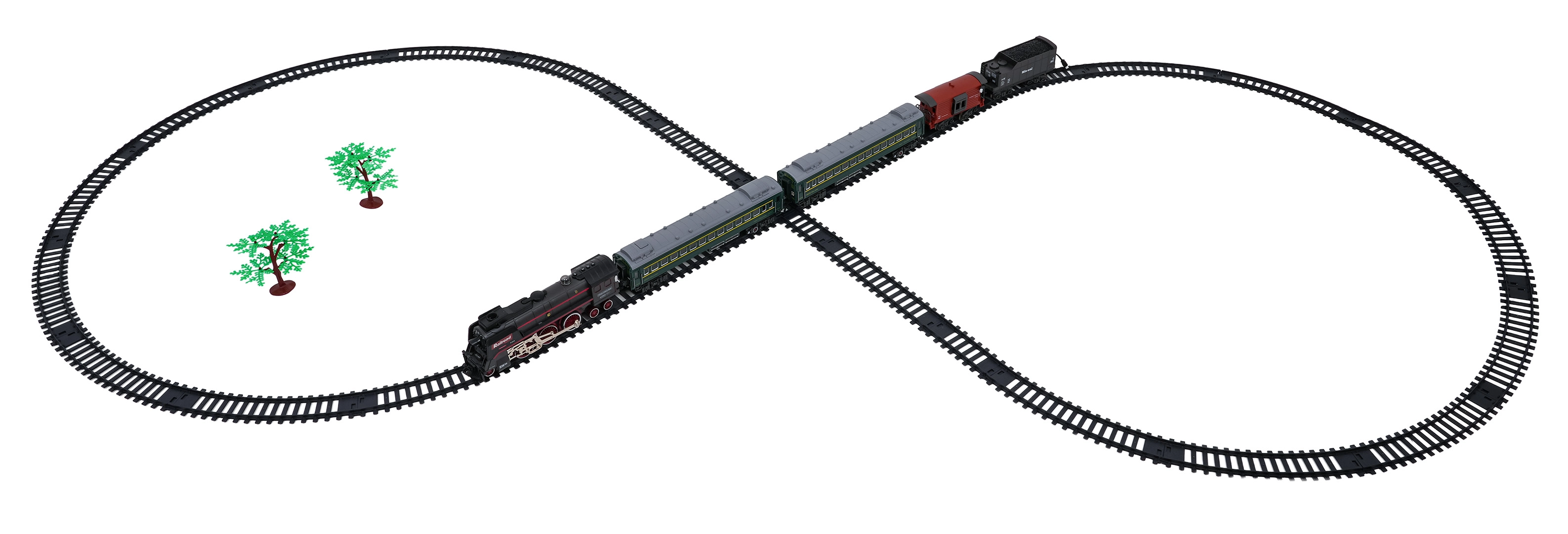 Čvrste plastične tračnice jednostavno se zakvače u prošireni osmičasti krug. Duga pruga nudi glatku vožnju i mnoštvo zabave.