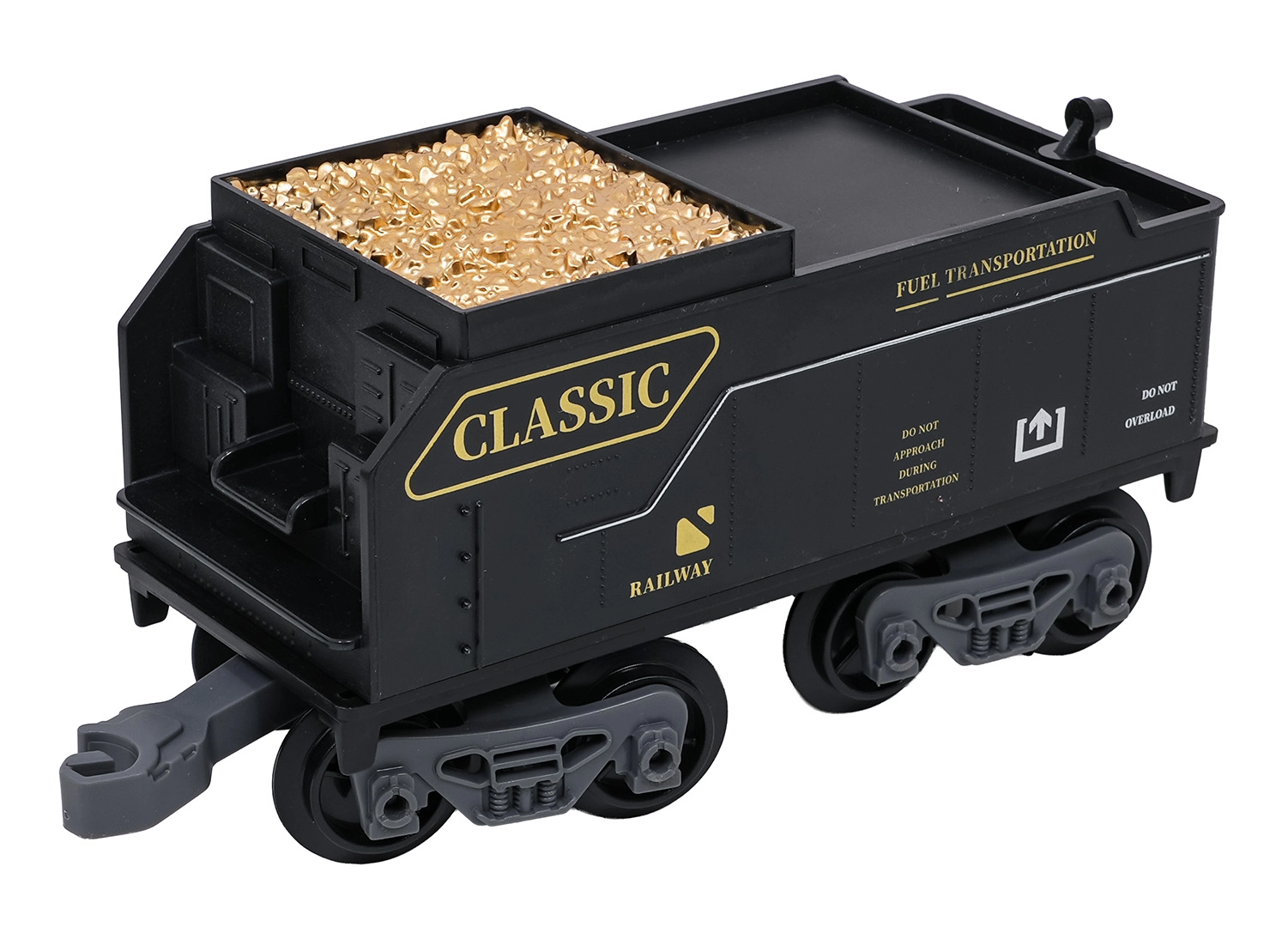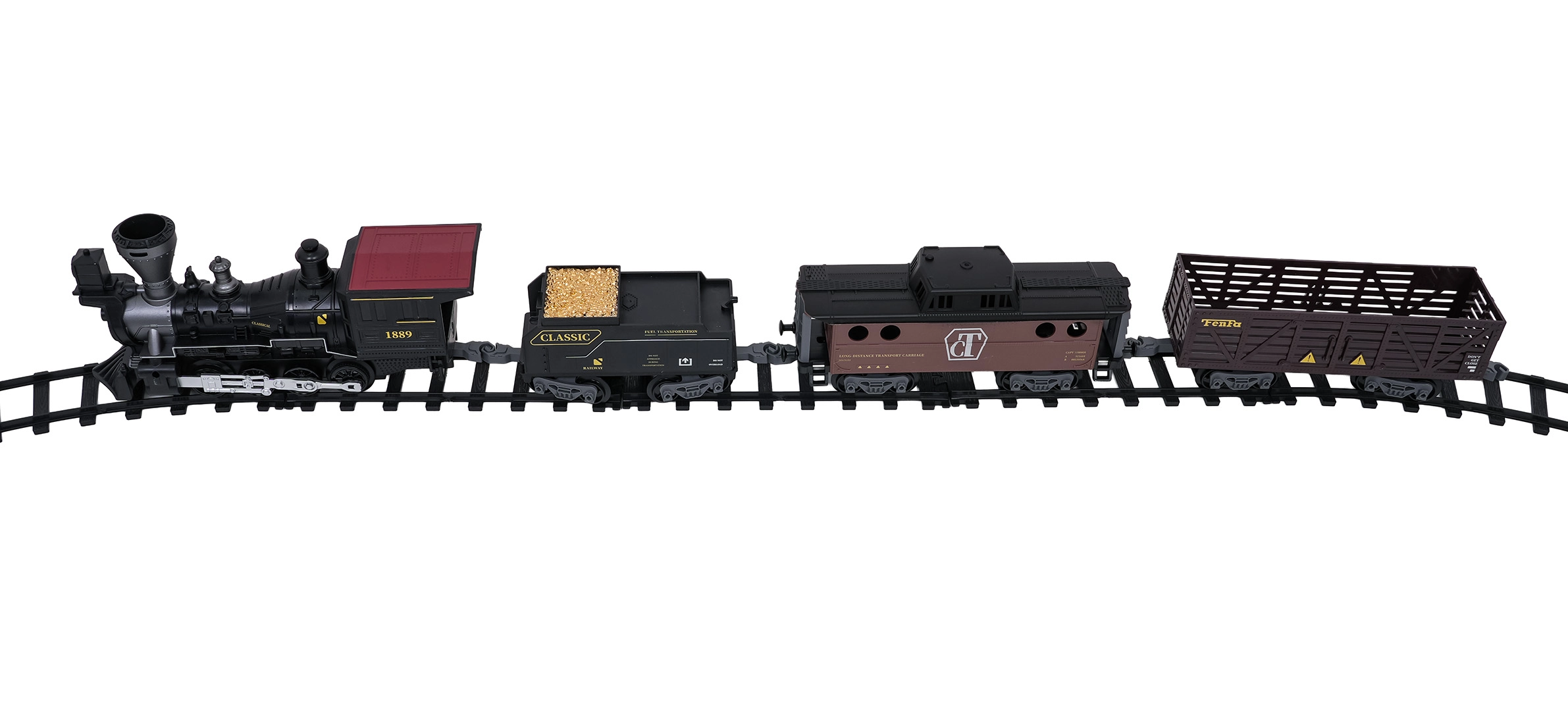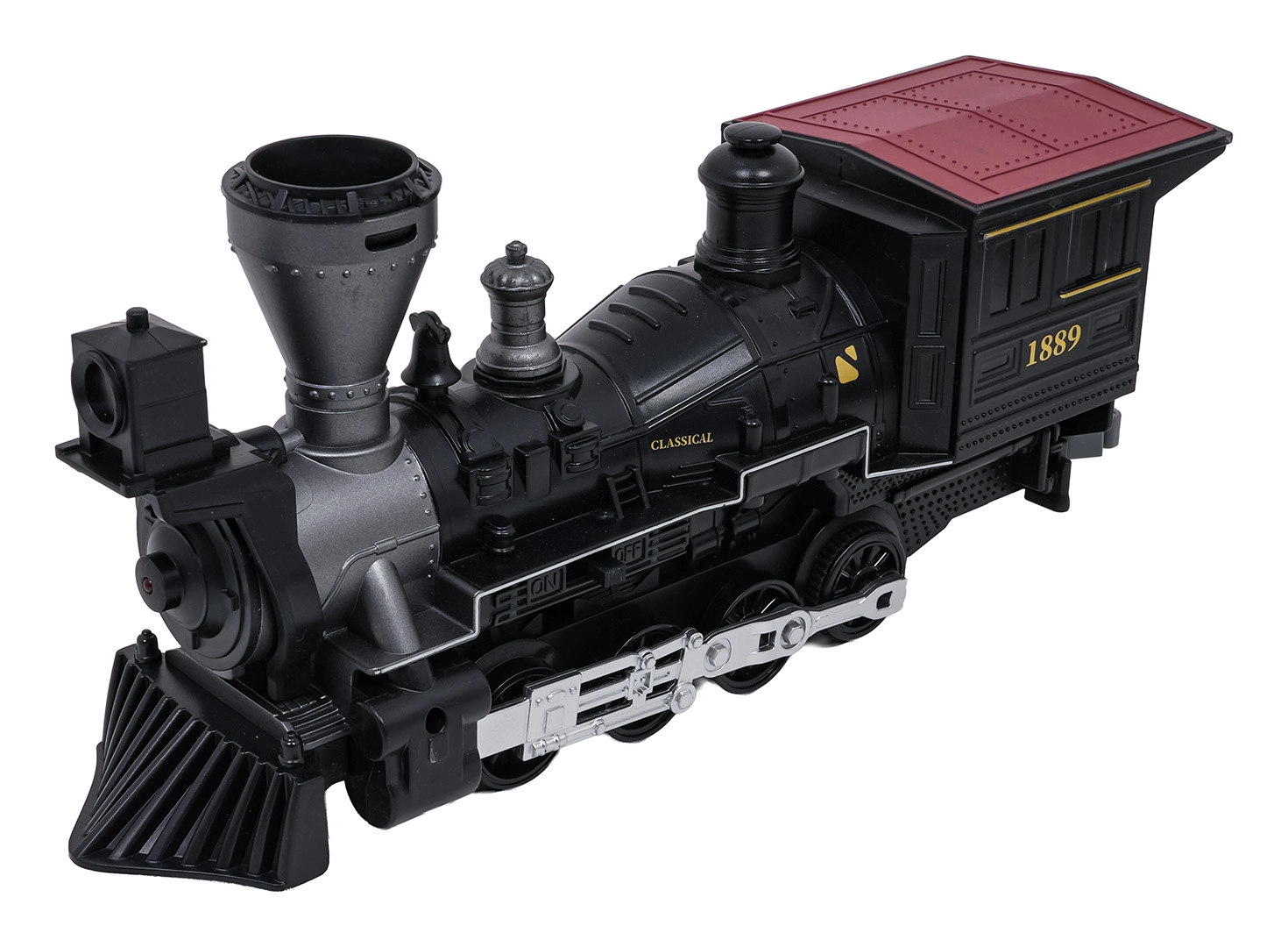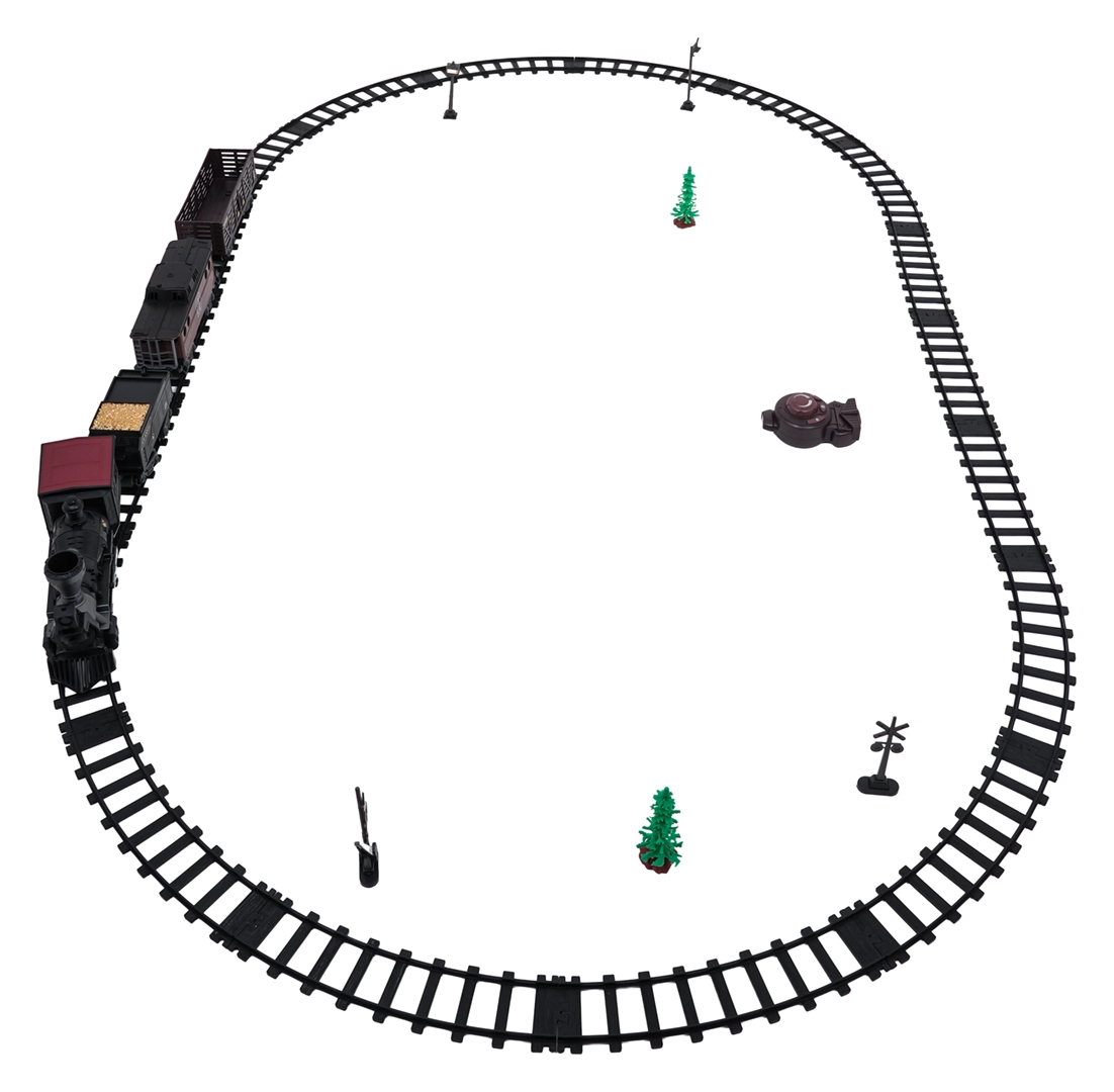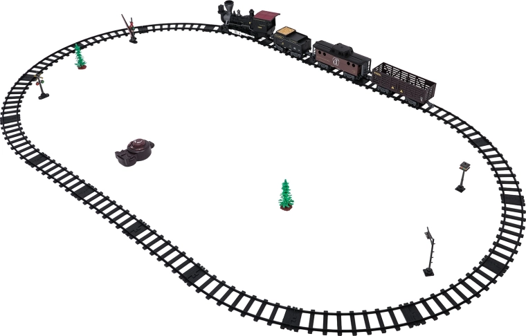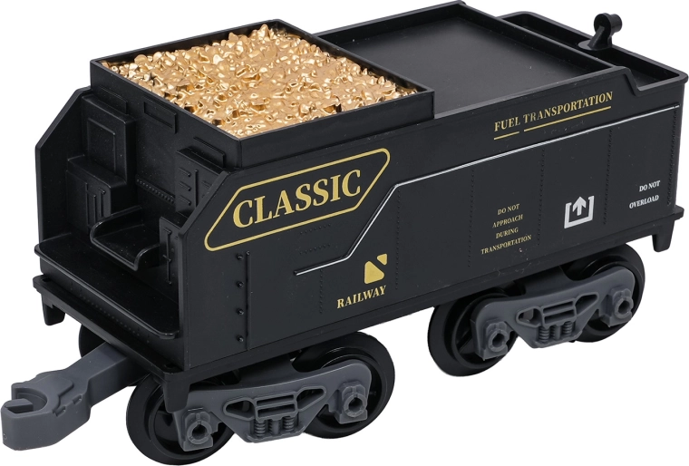 Stilski parni vlakić s bogatim detaljima razveselit će male i velike ljubitelje željeznice. Lokomotiva nakon dolijevanja vode stvara pravi dimni efekt, sprijeda svijetli reflektor i tijekom vožnje čuju se autentični zvukovi koje je po želji moguće isključiti. Izdržljive plastične tračnice čvrsto se spajaju i sigurne su za djecu od 3 godine.