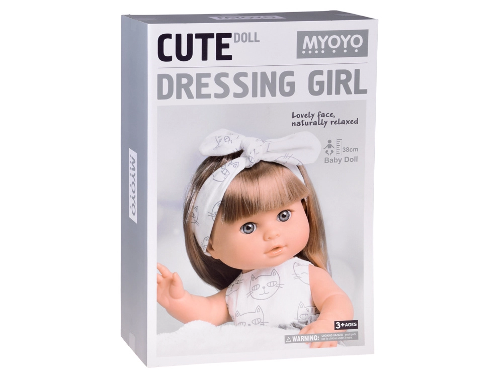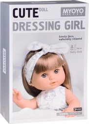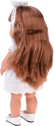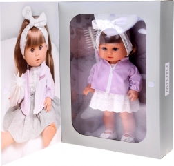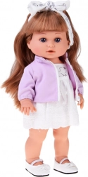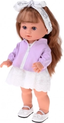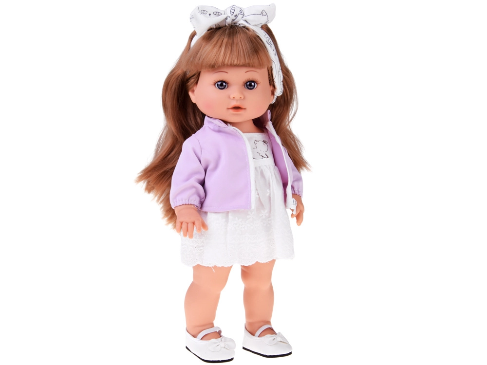 Otkrijte slatku lutku s dugom kosom visine 38 cm koja će oduševiti male frizerke i ljubitelje mode. Ima realistične crte, dugu smeđu kosu za češljanje, pokretne udove i nosi bijelu čipkastu haljinicu s ljubičastom jaknicom. U pakiranju je četka za kosu za beskrajne frizure i kreativnu igru.