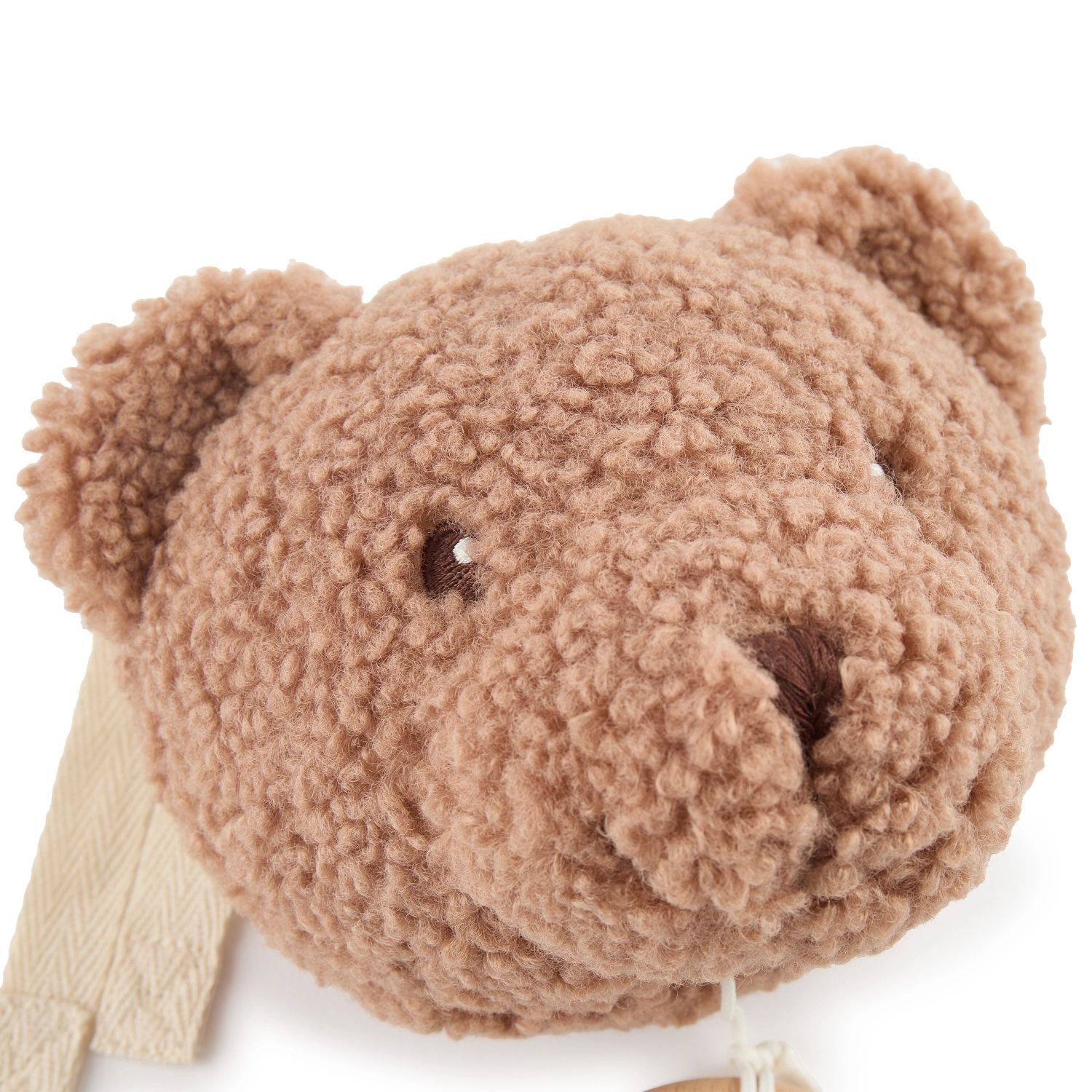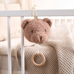 Viseća glazbena igračka medo Mika s drvenim prstenom