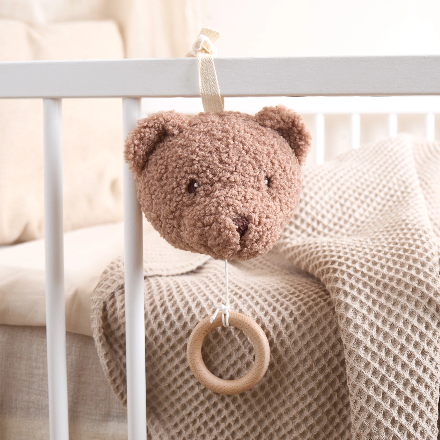 Uspavajte svoju bebu uz viseću glazbenu igračku medo Mika. Povlačenjem za drveni prsten oglasit će se Brahmsova uspavanka koja stvara umirujuću atmosferu pri uspavljivanju. Mekana plišana površina ugodna na dodir, sigurno pričvršćivanje na krevetić, kolica ili autosjedalicu te neškodljivi materijali koji ispunjavaju normu EN 71 čine ovu igračku idealnim pratiteljem od rođenja.