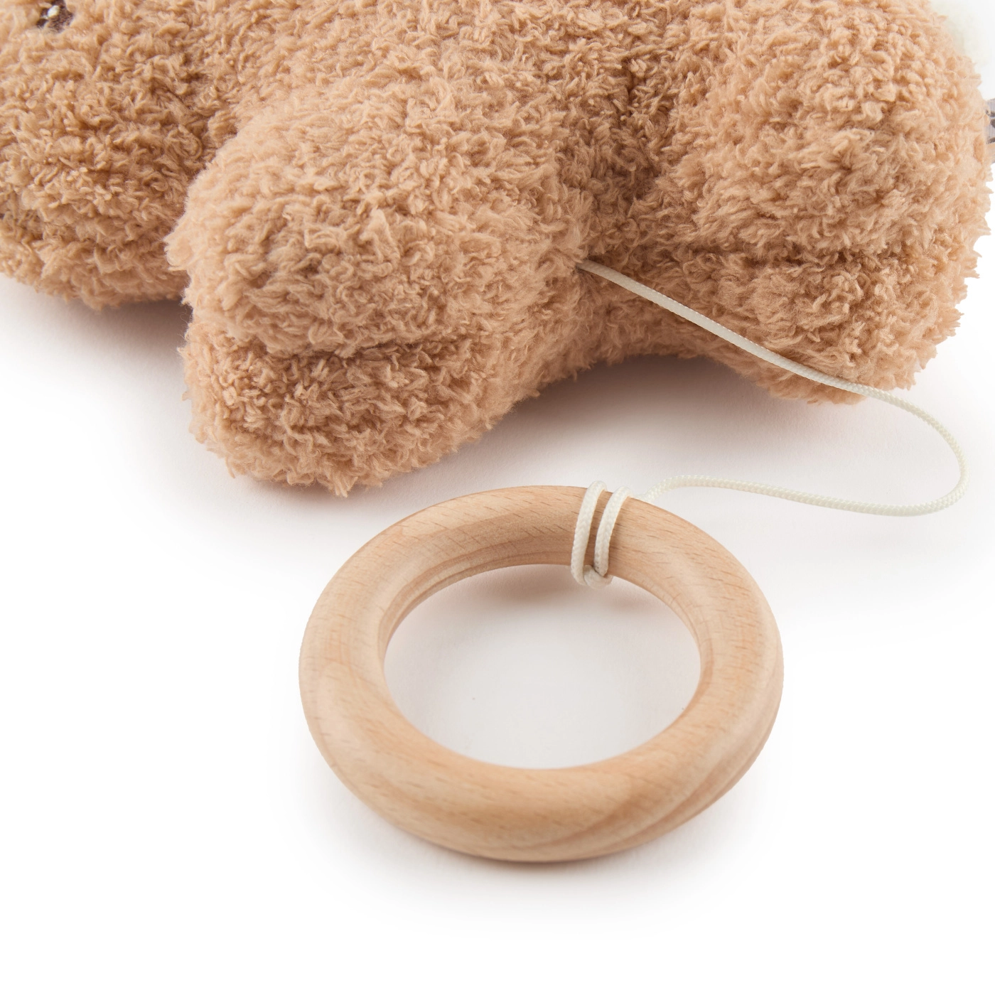 Nakon povlačenja za drveni prsten pokreće se nježna melodija koja pomaže bebi da se smiri i slatko zaspi.