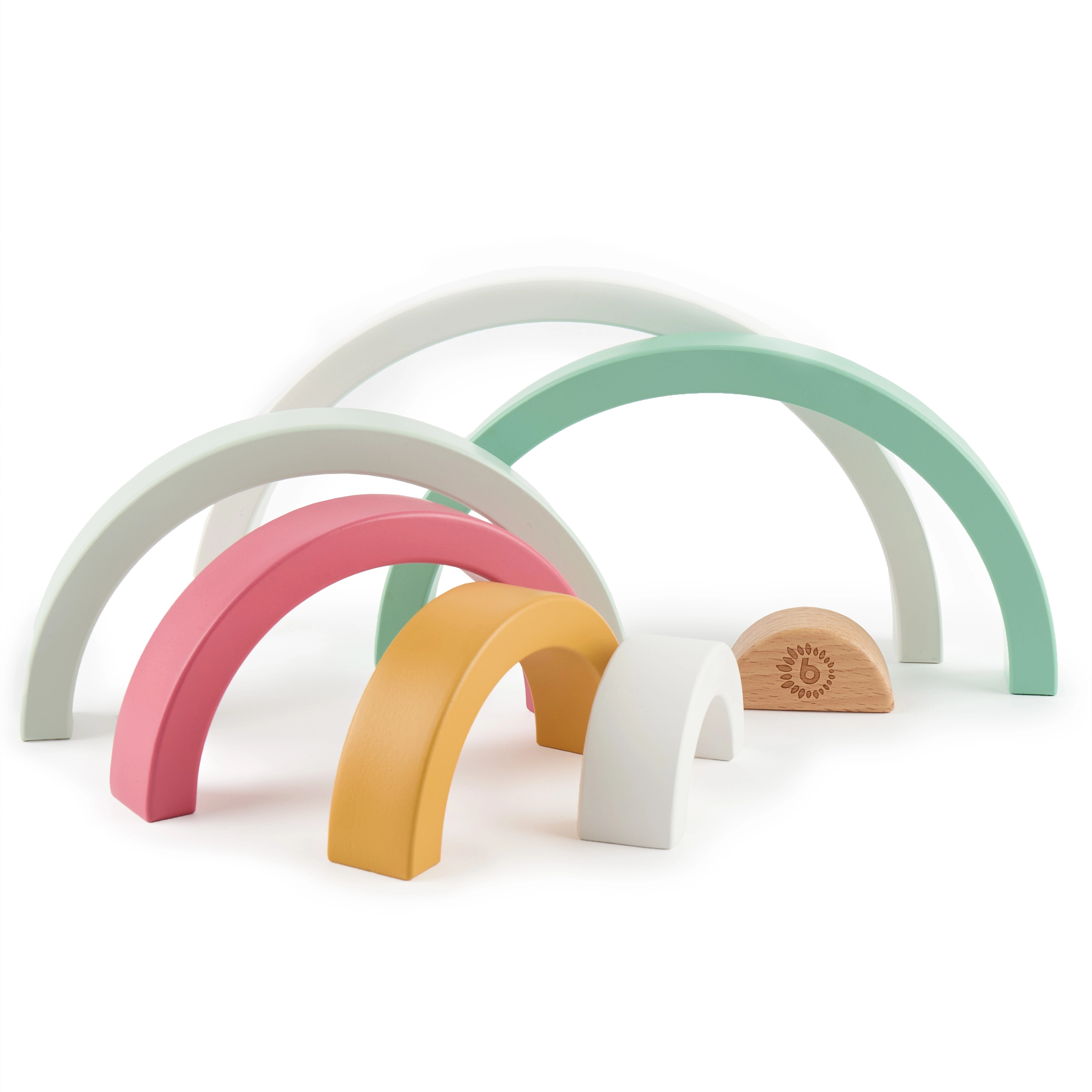 Drvena duga Bieco donosi beskrajne mogućnosti igre: djeca mogu slagati lukove, razvrstavati ih po veličini i bojama, graditi mostove, tunele ili kućice za svoje omiljene figurice. Jednostavni oblici i ugodne pastelne nijanse potiču otvorenu, maštovitu igru i podržavaju prirodan razvoj vještina.
