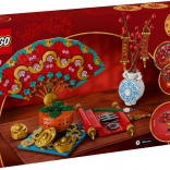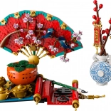 Stvorite u svom domu ugođaj proljetnih slavlja s detaljnim modelom LEGO Proljetni festival Prosperitet. Ova kolekcionarska dekoracija donosi ikonične motive koji simboliziraju ljubav, zdravlje, blagostanje i radost. Uključuje elegantnu lepezu s dvjema svrakam – glasnicama dobrih stvari koje dolaze u paru – te raskošne aranžmane s crvenim plodovima, persimonom, zlatnim polugama i svitkom s kineskim znakom za „proljeće“.