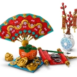 Proslavite Proljetni festival sa stilskom dekoracijom od LEGO. Sastavite simbole sreće, zdravlja i prosperiteta, uključujući rotirajući lepezu s dvjema svrakam, vazu s crvenim plodovima, kaki, zlatne poluge i kaligrafijsko pero sa svitkom sa znakom za „proljeće“. Idealna obiteljska zabava i sjajan dar za djecu od 9 godina naviše.
