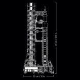 Kula s izvlačnim vodilicama, potpornjima i mostom za posadu daje modelu autentičan izgled pravog NASA-inog predlansirnog postrojenja.