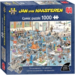 Otkrijte svijet pun humora s puzzlama JUMBO Jan van Haasteren – Mačja revija. Autor je poznat svojim prepoznatljivim stilom u kojem ne nedostaje živopisnih detalja, veselih situacija i mnoštva likova koji će vas zabaviti pri svakom slaganju. Iskusni obožavatelji potražit će ikonične elemente poput peraje morskog psa, lutajućih ruku, zubne proteze, Sv. Nikole pa čak i autorovog portreta.