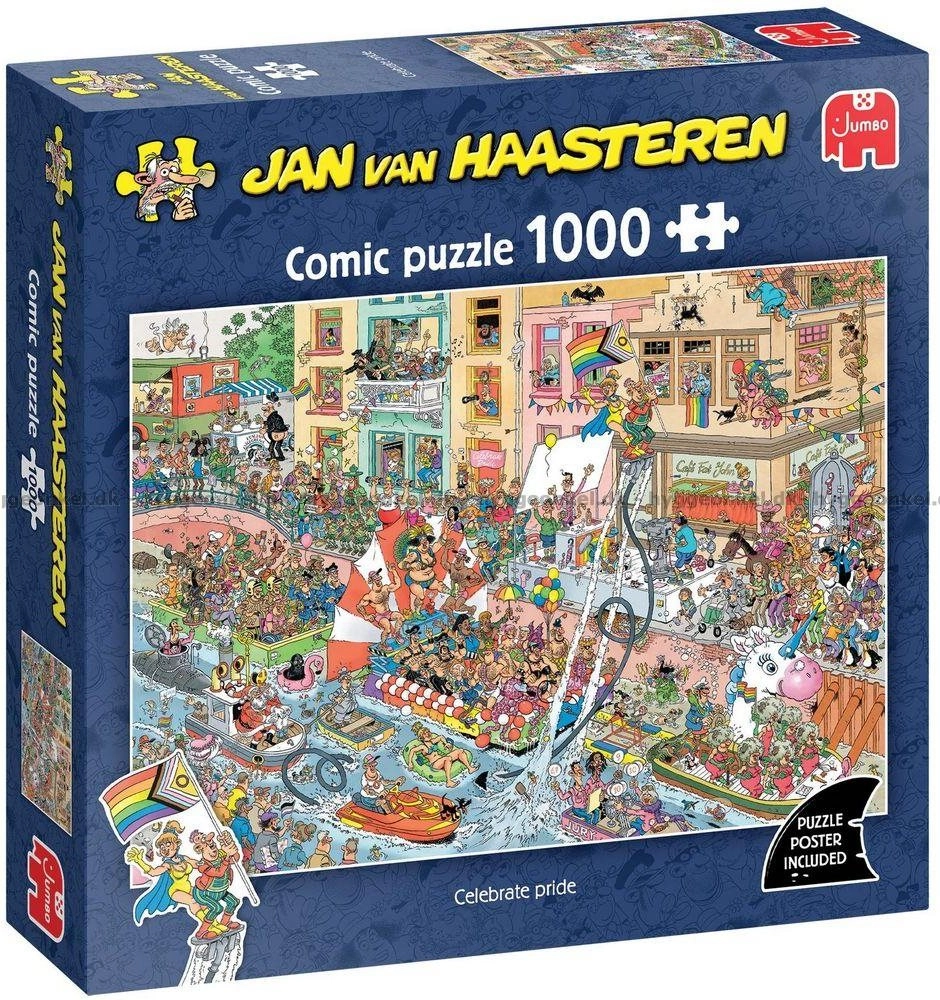 Uživajte u šarenom, detaljnom i duhovitom slaganju s kultnim autorom Janom van Haasterenom. Ove puzzlee s motivom Proslava ponosa nude mnoštvo skrivenih gegova, prepoznatljivu peraju morskog psa i druge autorove potpisne elemente. Idealna zabava za cijelu obitelj tijekom dugih trenutaka.