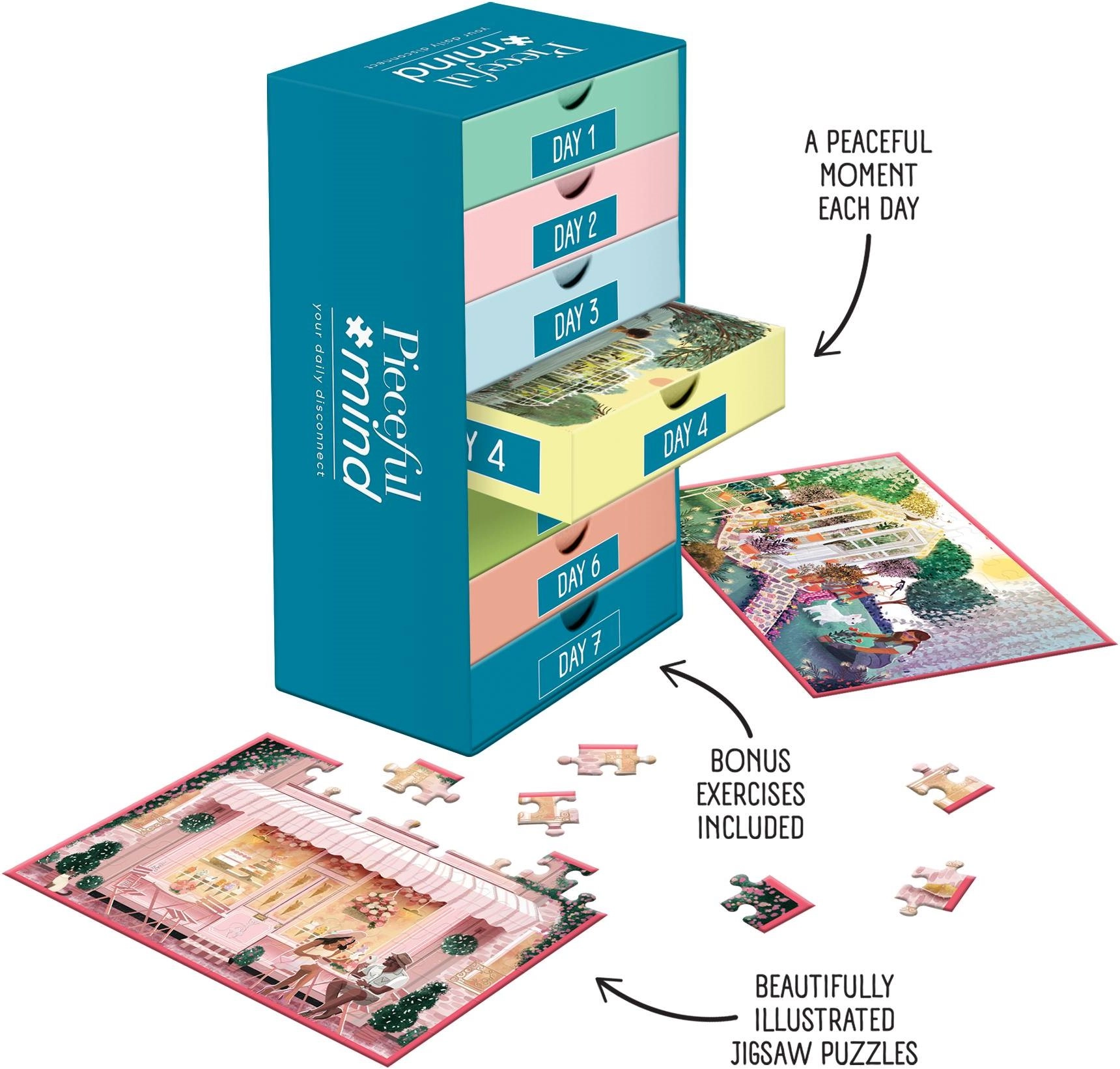 Set JUMBO Pieceful Mind donosi 6 zasebnih puzzli od po 54 dijela, osmišljenih da umire um i inspiriraju na redoviti odmor. Svaka mini puzzle ima kompaktne dimenzije, stoga je idealna za kratke dnevne trenutke tišine.