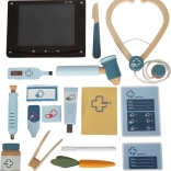 Ovaj slatki veterinarski set spaja mekanog plišanog zekana s realističnim alatima: stetoskopom, toplomjerom, otoskopom, špricom, zavojem i zaštitnim ovratnikom. Tu je i „rendgenski” tablet s izmjenjivim snimkama (pas, mačka, zec, konj) te karticama za pisanje bilješki. Djeca vježbaju brigu o životinjama, razvijaju rječnik i zdravstvenu osviještenost – uz puno maštovite zabave.