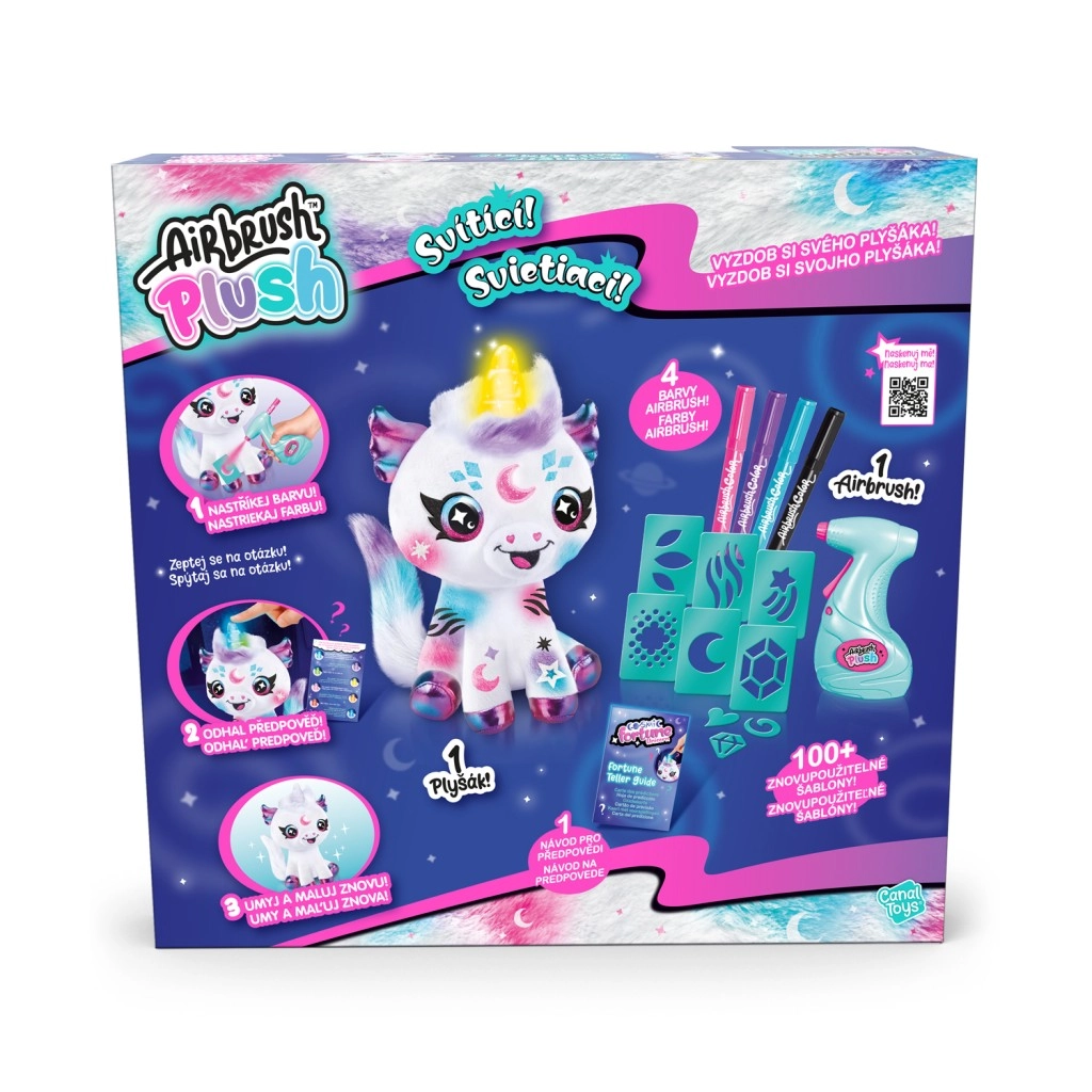 - Plišani jednorog, airbrush alat, 4 obojene patrone, 100 šablona, upute