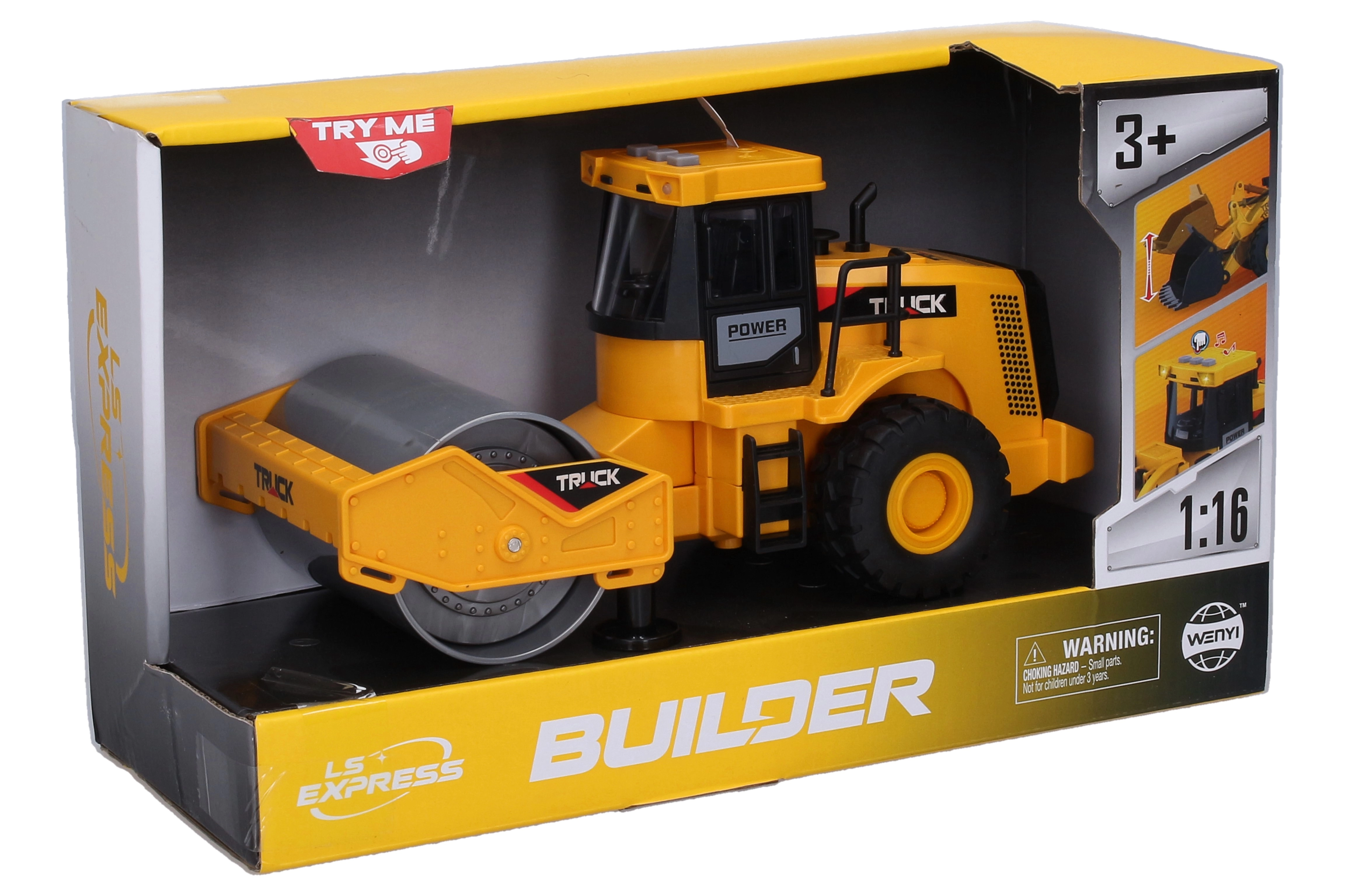 Robustan građevinski valjak na zamašnjak razveselit će male graditelje realističnim funkcijama. Nudi svjetlosne i zvučne efekte, jednostavno upravljanje pomoću tipki na krovu i zahvaljujući zamašnjaku glatko kreće bez baterija za pogon. Idealna igračka za razvoj mašte i igre na gradilištu.