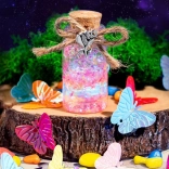 Otkrijte koliko je lako i zabavno stvarati vlastite dekorativne napitke! Ovaj kreativni set za djecu sadrži mini staklene bočice s čepom od pluta, šljokice, pigmente, ukrase s fliterima, privjeske u obliku leptira i praktične alate za precizno doziranje. Djeca vježbaju finu motoriku, kreativnost i maštu pri miješanju boja, punjenju i ukrašavanju čarobnih eliksira.