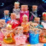 Set za izradu “čarobnih napitaka” pretvara svaku ideju u sjajno mini remek-djelo. Dovoljno je usuti šljokice i ukrase u bočicu, dodati vodu s pigmentom, zatvoriti plutom i dovršiti privjescima. Rezultat može biti privjesak, talisman ili slatka dekoracija za dječju sobu.