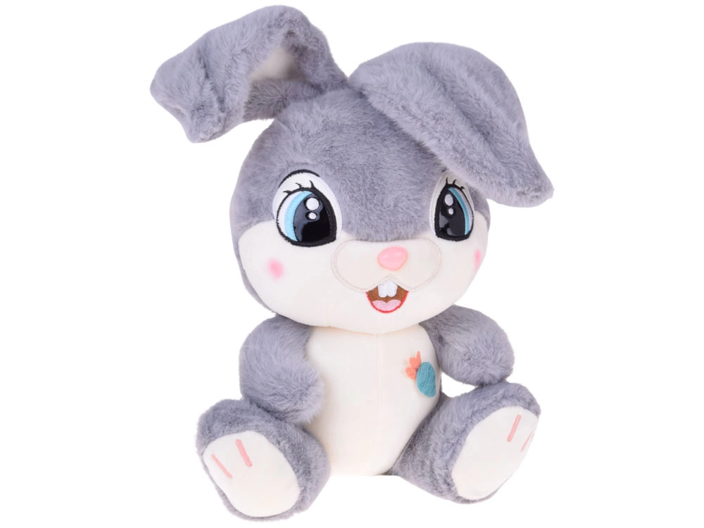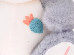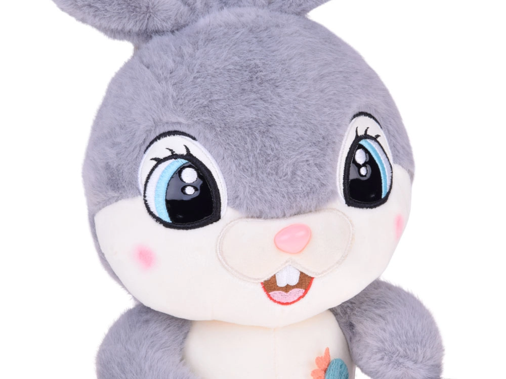 Preslatki plišani zeko visine 40 cm izrađen je od nevjerojatno mekog i baršunastog materijala u srebrnosivoj nijansi s kremastim trbuščićem. Ima savitljive duge uške, slatku njuškicu i sigurno vezené detalje. Idealan je za maženje, kao umirujući pratitelj i kao stilska dekoracija dječje sobe.