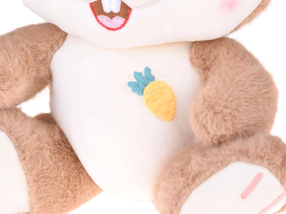 Plišani zeko Karmelek ističe se mekim karamelnim dlačicama i nježnim izrazom s preslatkim zubićima. Savitljive uške zahvaljujući ušivenoj potpori lako namjestite – zeko tako svaki put dobije novi izraz. Kremasti trbuščić s decentnim vezom (mrkvica/ananas) daje igrački šarmantan detalj.